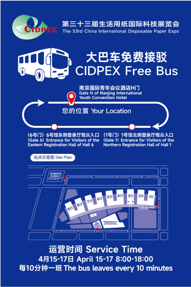 一年一度的生活用纸国际科技展览会即将于4月15-17日在南京国际博览中心拉开帷幕。为助您轻松抵达展会现场,主办方特为新朋故友们奉上专属交通指南,助您畅行无忧!