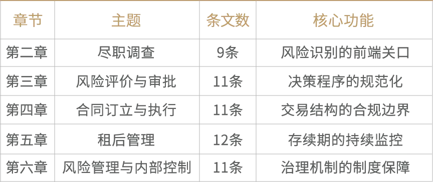 《办法》共计8章68条,覆盖了从尽职调查到风险处置的完整业务链条。其章节设计打破了传统“主体—行为—责任”的立法模式,按照融资租赁业务的实际操作流程进行编排,在立法技术上体现出鲜明的“业务流程导向”特征。
