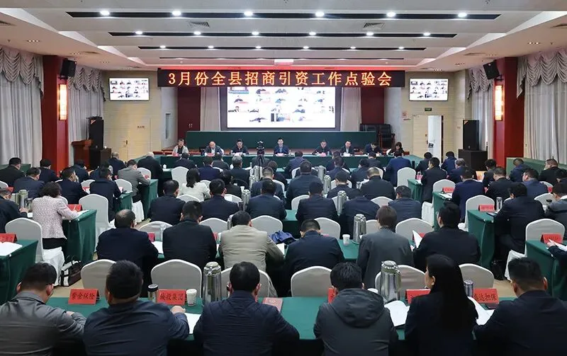 3月30日下午,我县召开3月份招商引资工作点验会,盘点前一阶段招商工作情况,分析形势、找准差距、明确责任,进一步推动招商引资工作再上新台阶。何川、王昌盛、马勇、王平、许晓波、赵鹏程、颜峰、王彩荣等县领导参加会议。