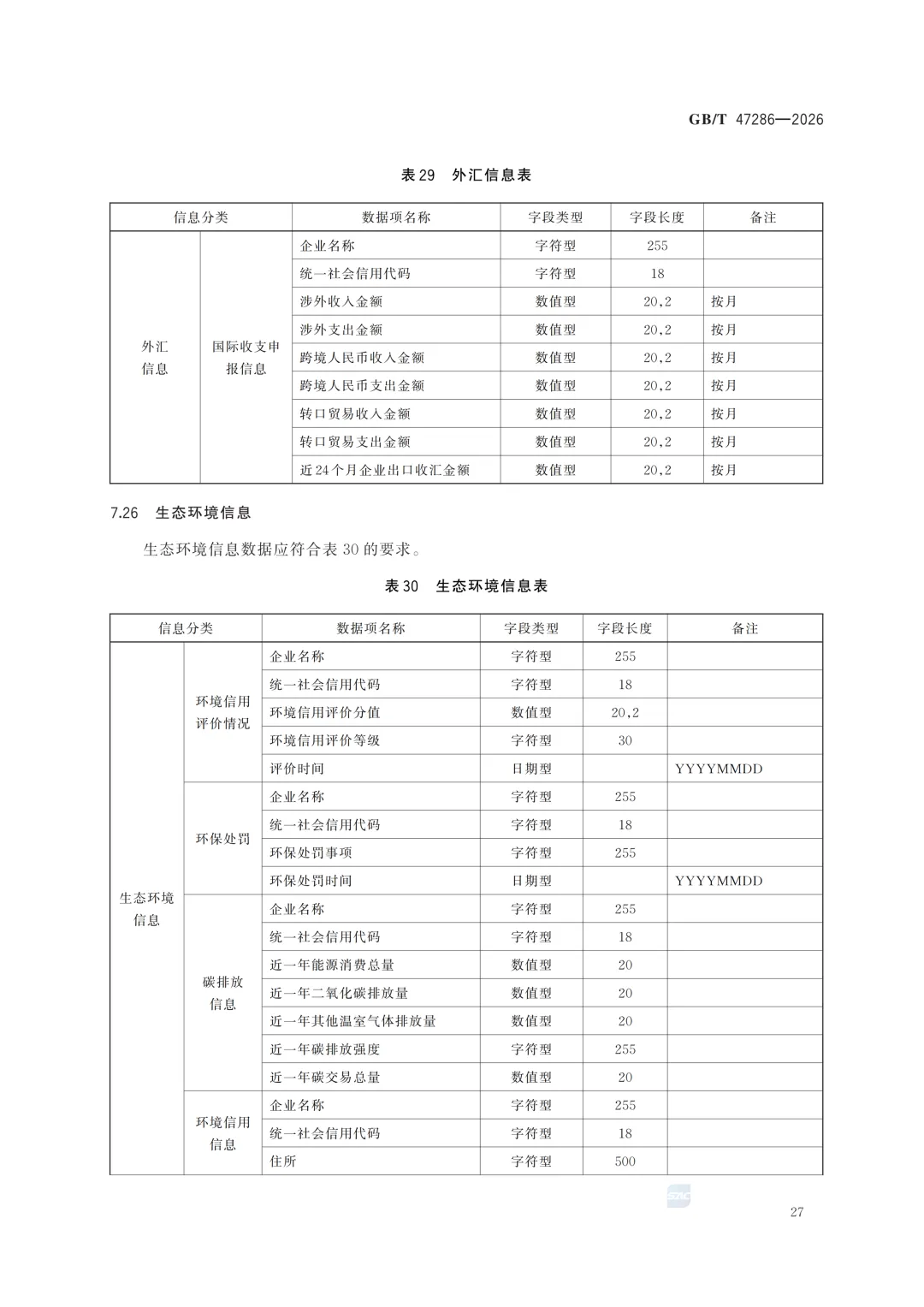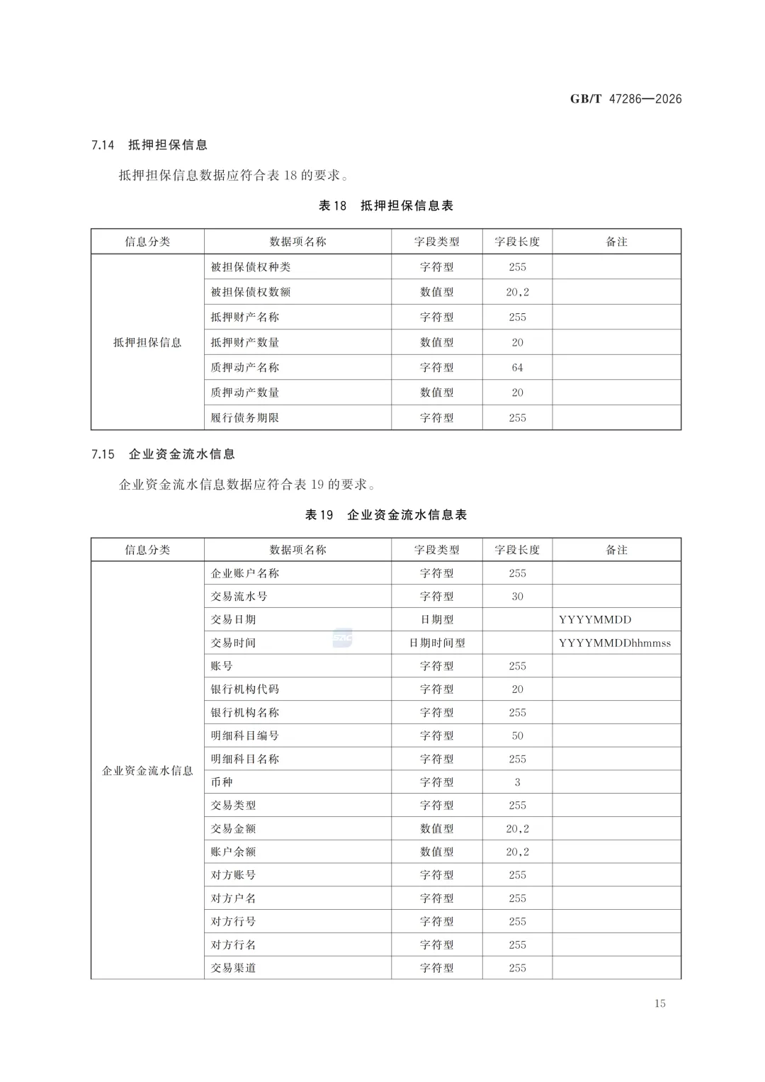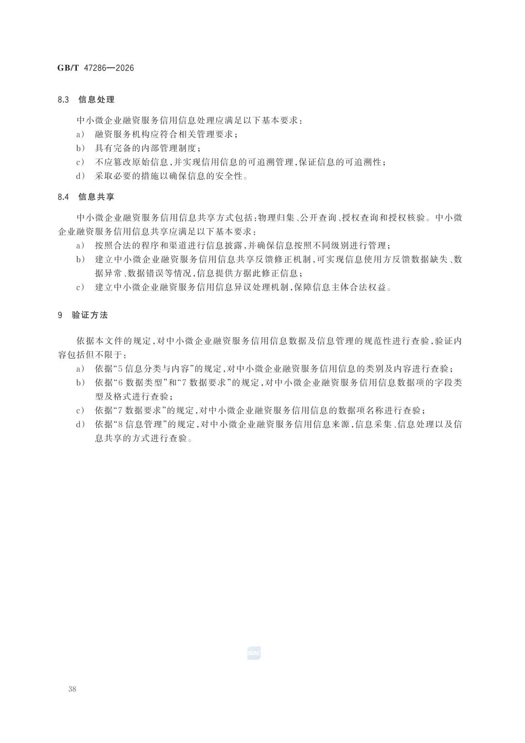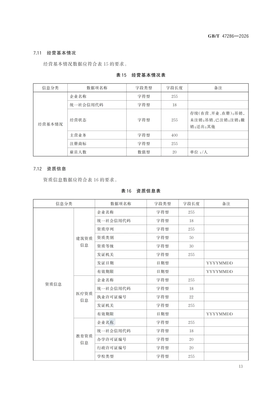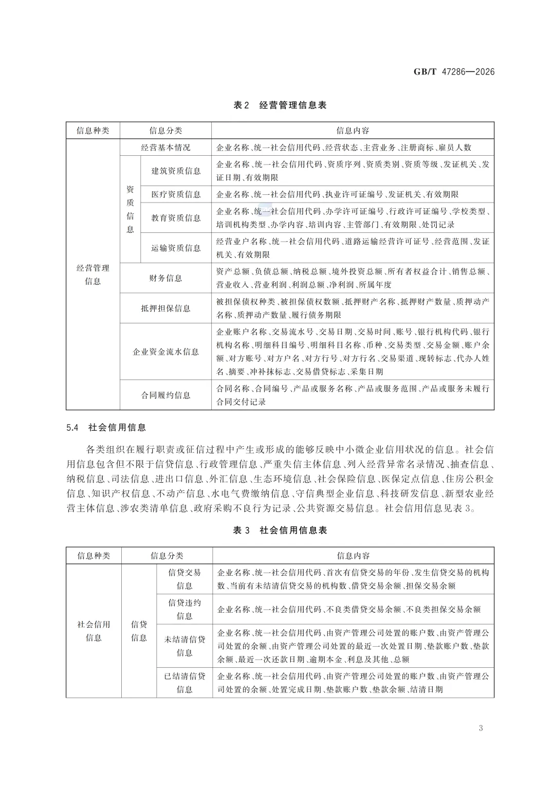 《中小微企业融资服务信用信息数据规范》国家标准经起草单位调研、起草、研讨和修改完善后,现已正式发布,将于2026年6月1日起实施。标准确立了中小微企业融资服务中使用信用信息数据的基本原则,规定了信息分类与内容、数据类型、数据要求以及信息管理的内容,描述了验证方法。标准起草单位为国家公共信用和地理空间信息中心、中国标准化研究院等。