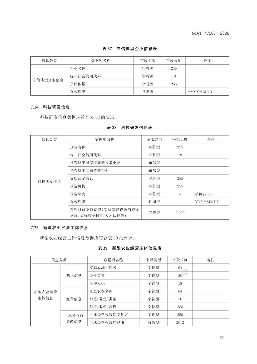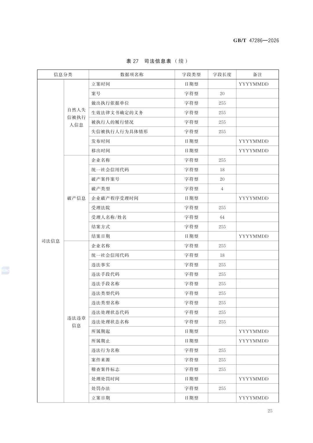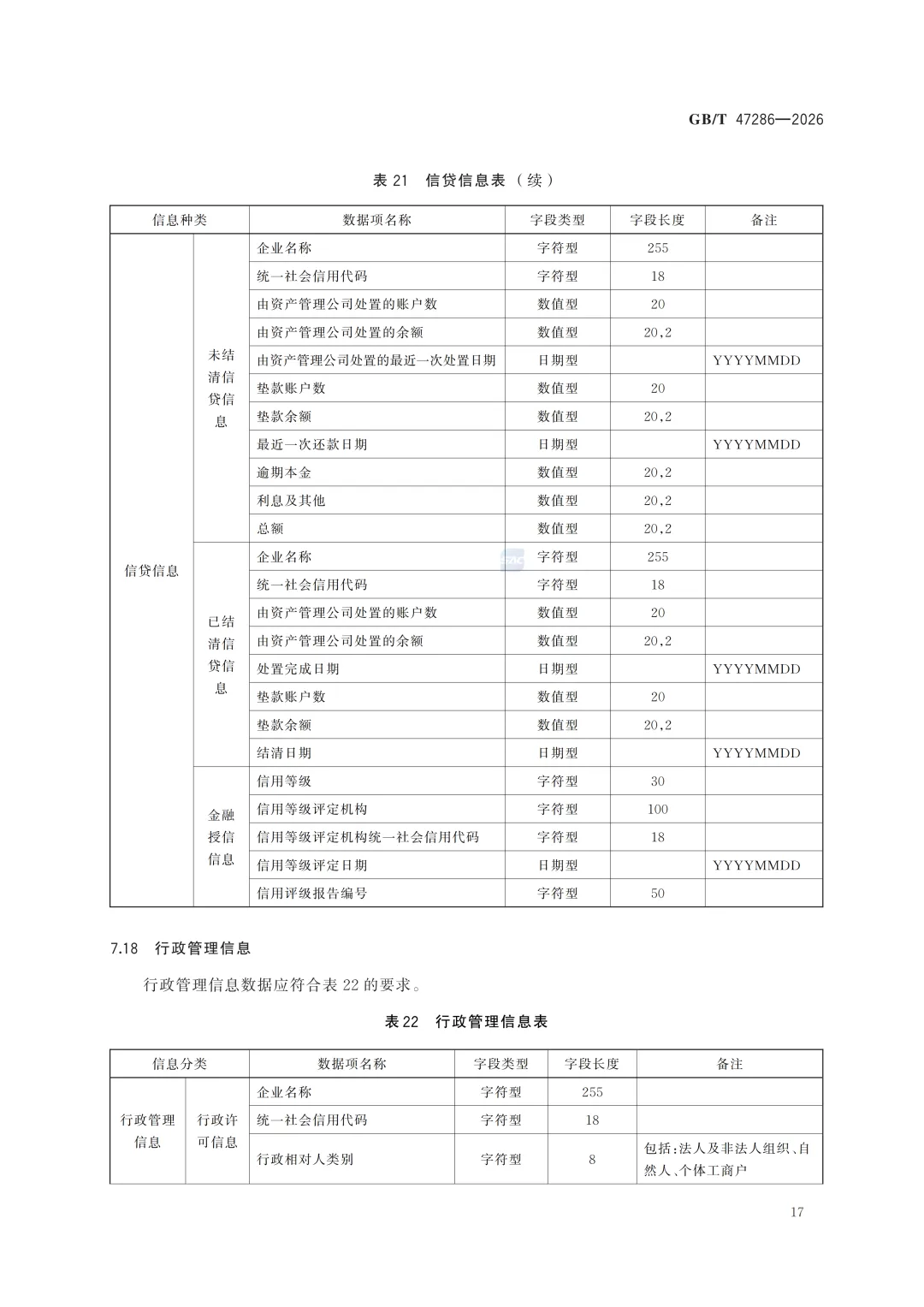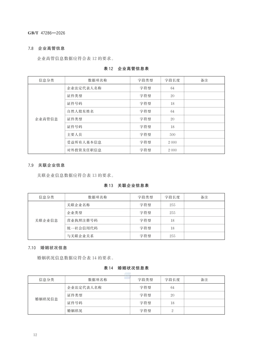 《中小微企业融资服务信用信息数据规范》国家标准经起草单位调研、起草、研讨和修改完善后,现已正式发布,将于2026年6月1日起实施。标准确立了中小微企业融资服务中使用信用信息数据的基本原则,规定了信息分类与内容、数据类型、数据要求以及信息管理的内容,描述了验证方法。标准起草单位为国家公共信用和地理空间信息中心、中国标准化研究院等。