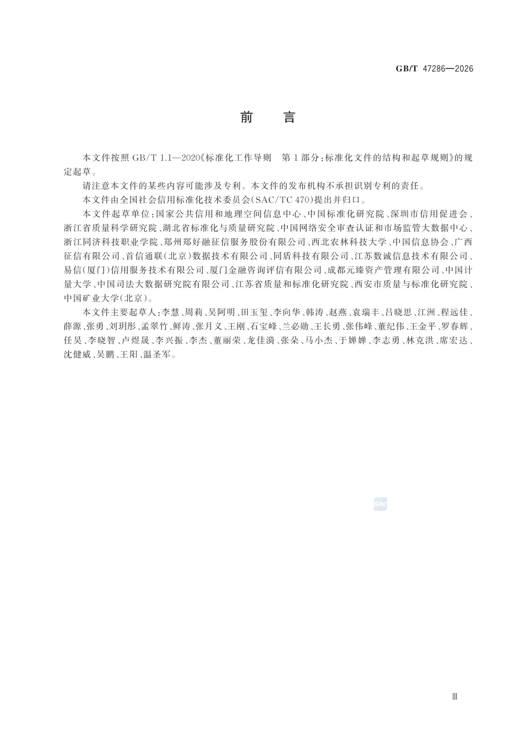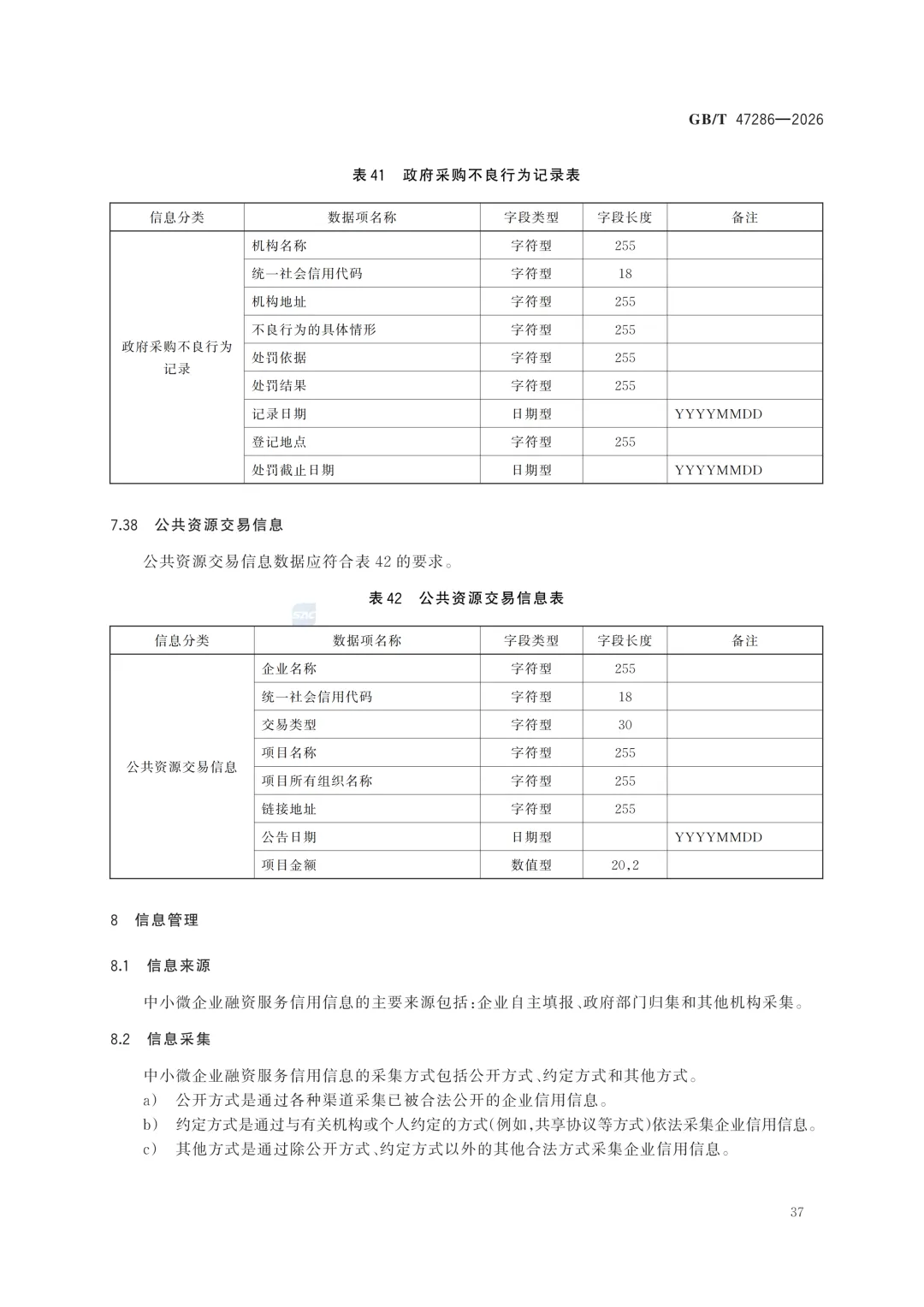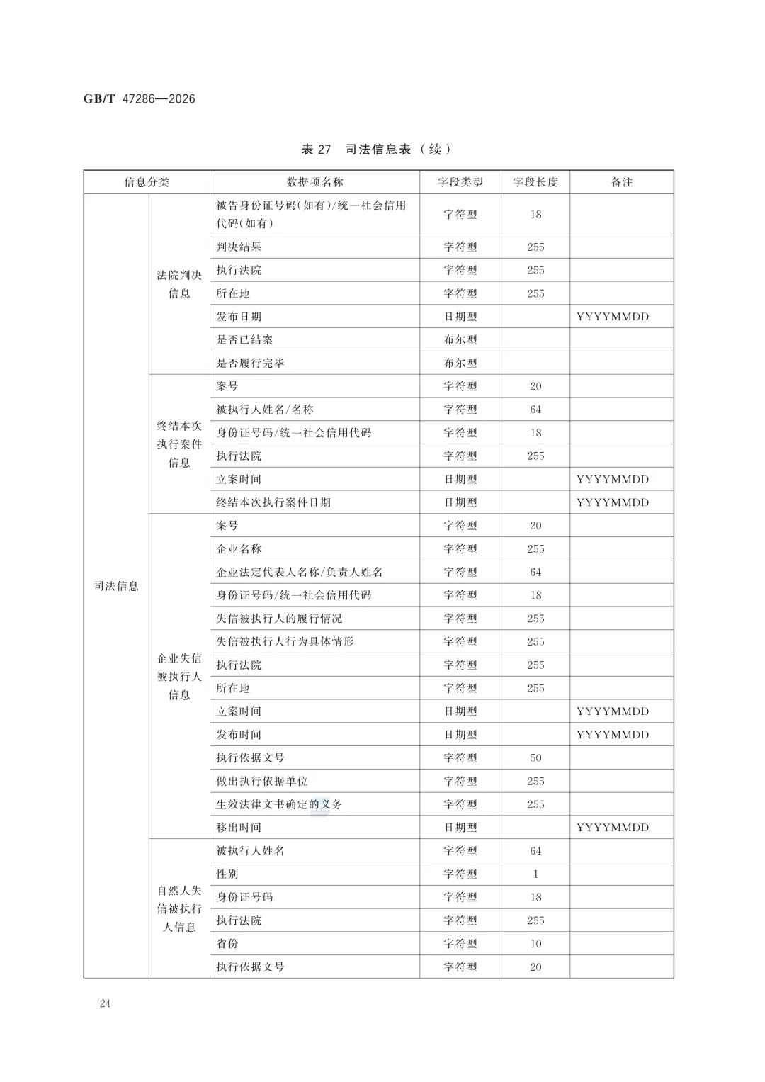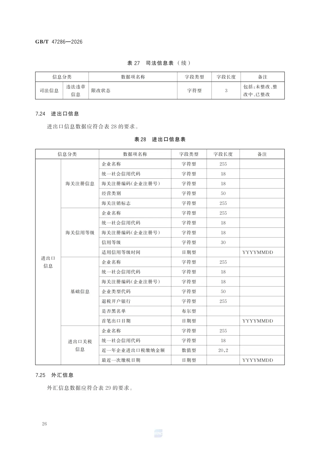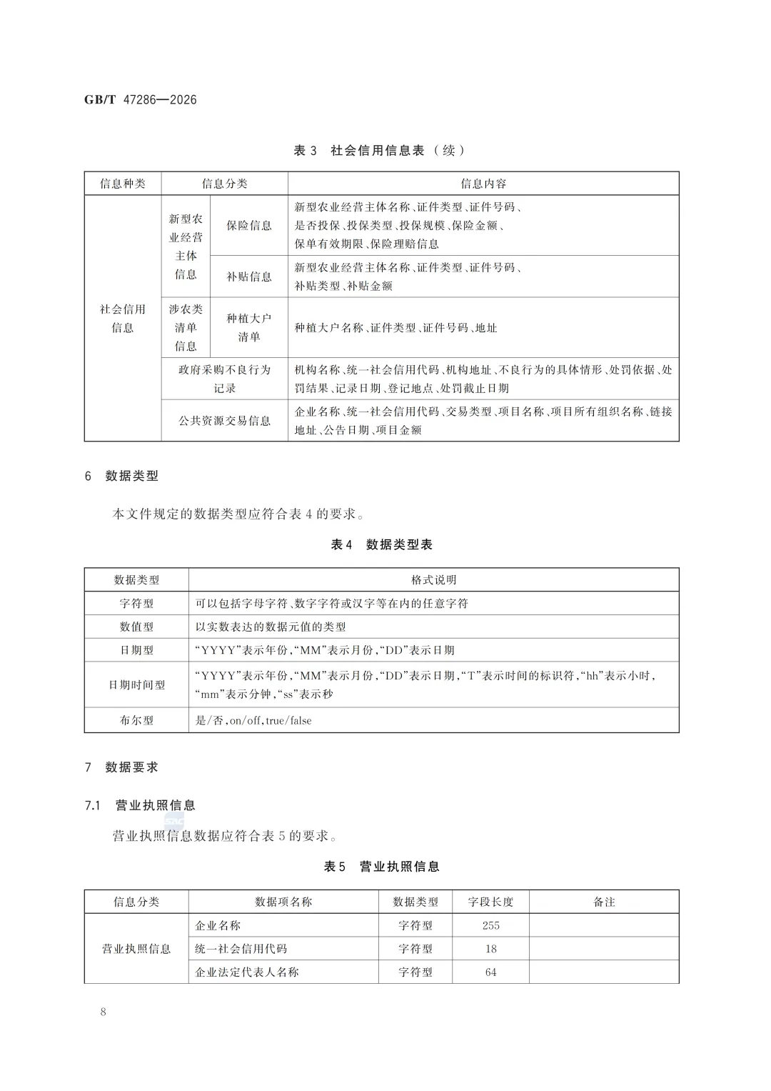 《中小微企业融资服务信用信息数据规范》国家标准经起草单位调研、起草、研讨和修改完善后,现已正式发布,将于2026年6月1日起实施。标准确立了中小微企业融资服务中使用信用信息数据的基本原则,规定了信息分类与内容、数据类型、数据要求以及信息管理的内容,描述了验证方法。标准起草单位为国家公共信用和地理空间信息中心、中国标准化研究院等。