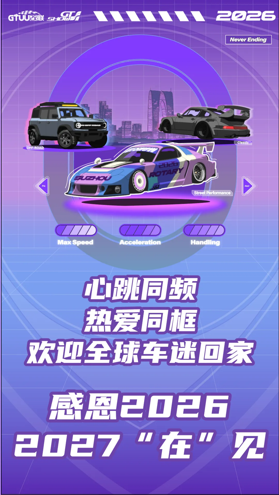 感恩每一位奔赴C3-42展位的车迷,感恩每一份信任与喜爱,感恩每一次相遇与陪伴。2026 GT SHOW 的落幕,不是结束,而是新的开始。