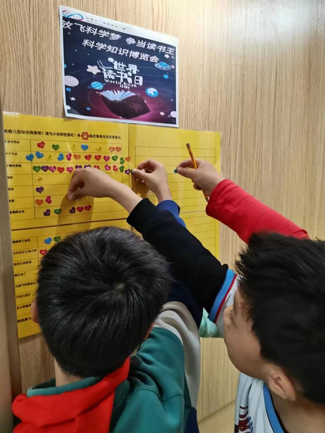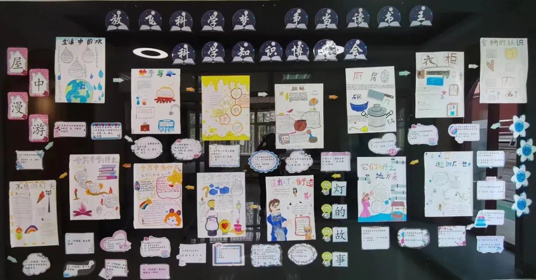 十一丰小四年级的孩子们共读了米·伊林的著作《十万个为什么》,在充分的阅读后,他们自主设计组织了一场“放飞科学梦 争当读书王”科学知识博览会。