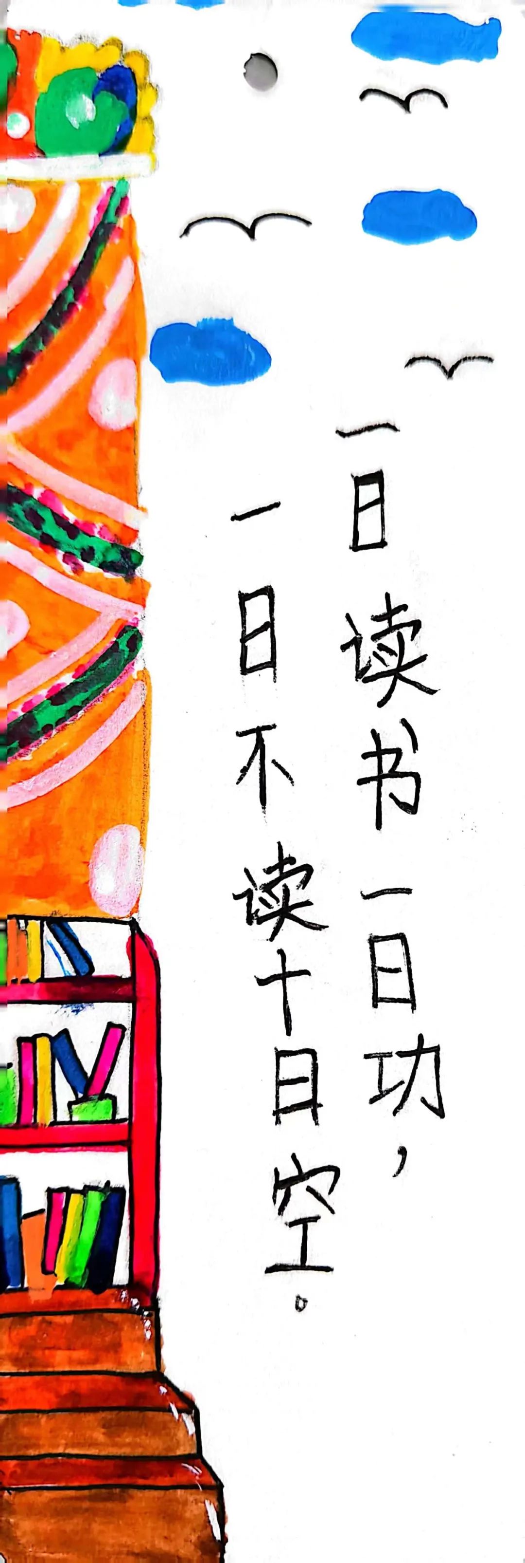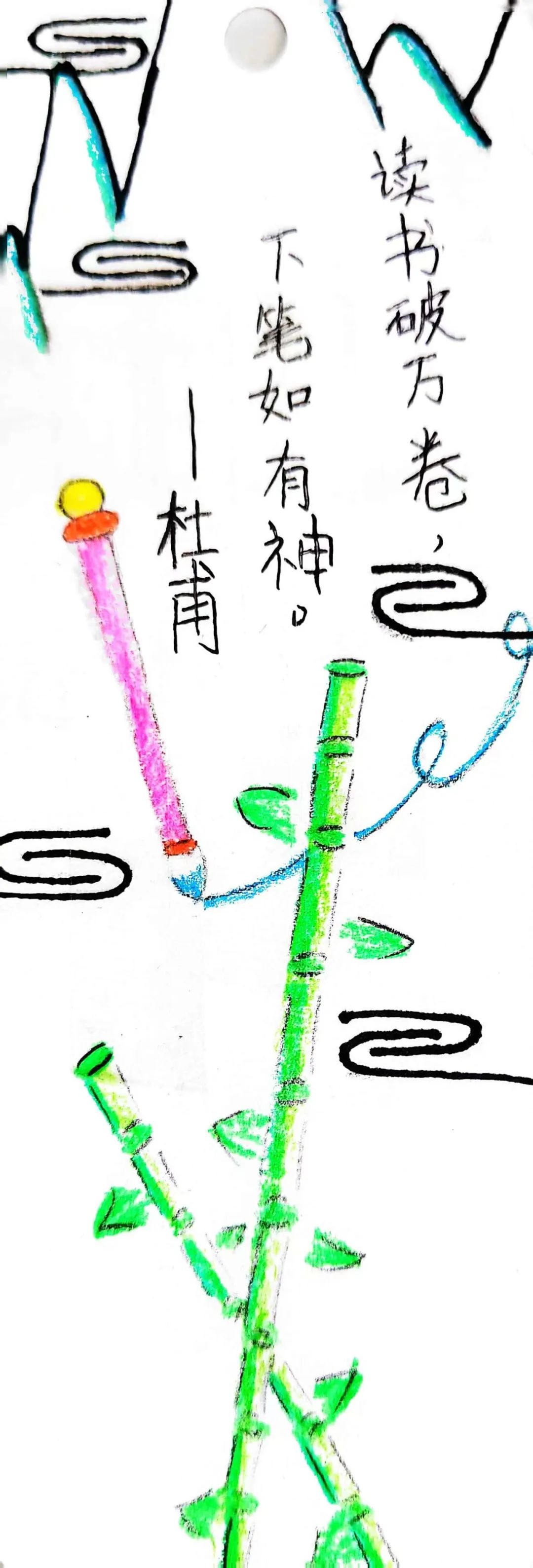 为了激励更多的同学参与活动,孩子们又化身为设计师,设计了与读书相关的精美书签和奖状。最终,有20个书签设计精美,脱颖而出,印制成套,成为本届校级读书节活动的奖品。