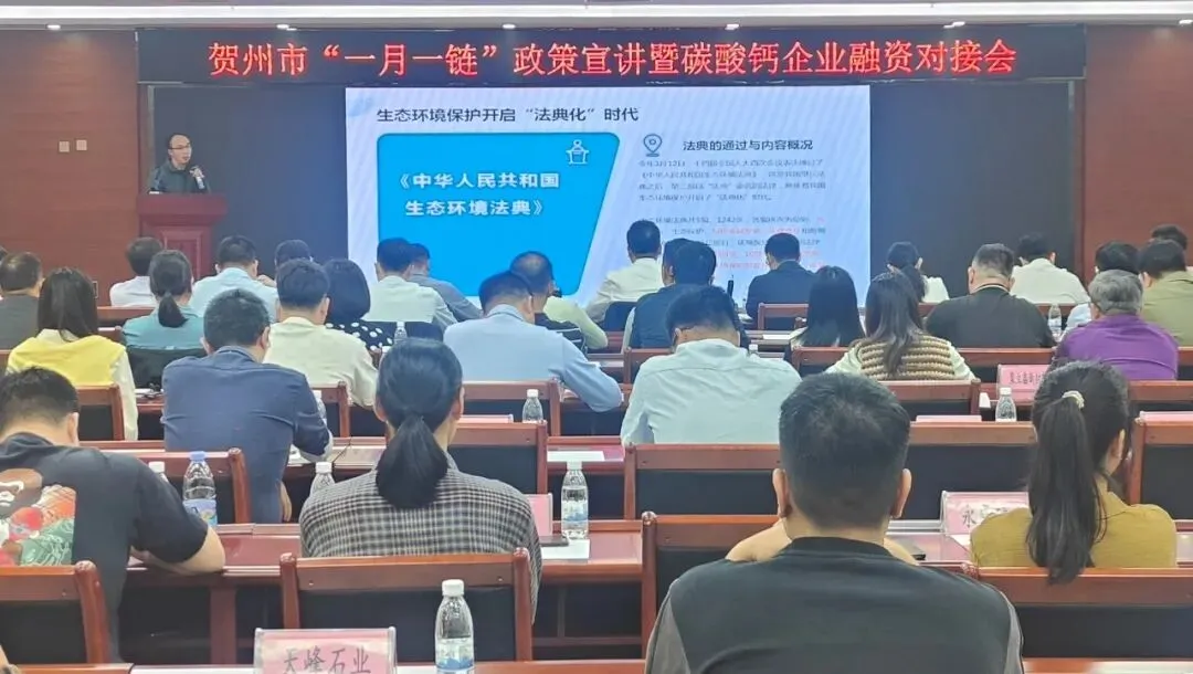 会上,市生态环境局现场解读碳酸钙产业环保政策,为企业绿色发展明晰合规要求与转型方向。建设银行贺州分行、贺州桂东农村合作银行、桂林银行贺州分行三家金融机构代表,结合碳酸钙企业经营特点和融资需求,推介了产业链特色融资产品,为不同规模、不同发展阶段的企业提供多样化融资选择。