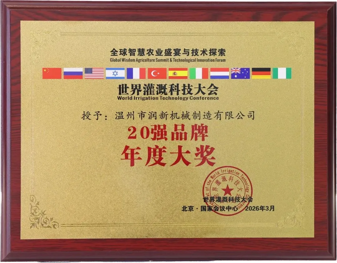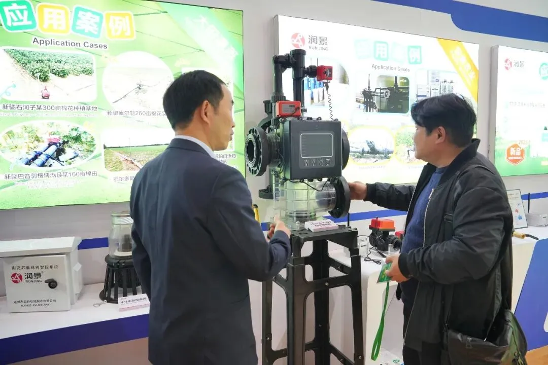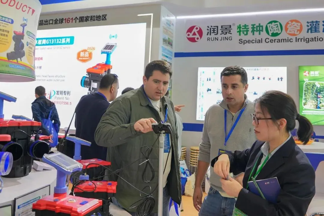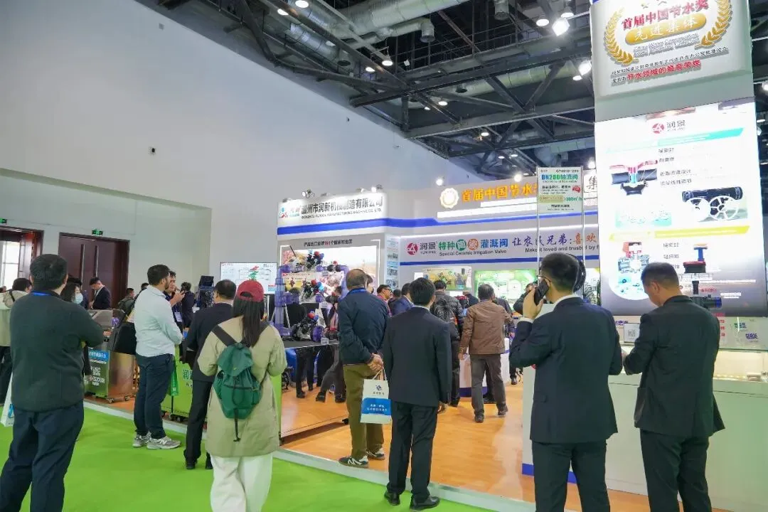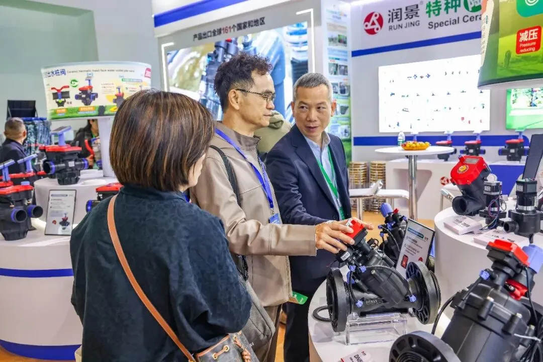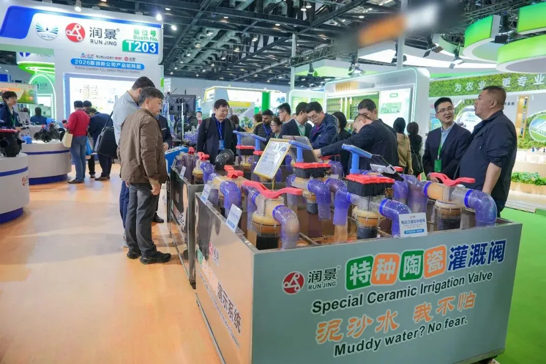 润新公司携润景170mm大直径陶瓷阀芯的大流量出水桩阀G13X/G15X系列、适用地面明管安装的侧进水出水桩阀G14系列、法兰连接/卡箍快接/电池可拆出水桩阀G13X系列、数字化出水桩阀G13X系列、出水桩角阀G12142X-100、DN200电动轴流阀G7401D-200(专利号:ZL202422543806.7;ZL202522554610.2)、带手动功能的电动水力控制阀、电动持压阀G2X01系列、DN80电动反冲洗阀F146B、吸肥阀G82142D、水肥配比阀G83222D-50、DN25-DN50直通阀G62142D、DN25-DN50角阀G52142D等近20款新产品,以及比例减压阀G4001系列、底阀G3001系列、水肥一体机RJ-SF301、叠片式过滤器RJ-DF系列、70m³/h大流量自动控制阀F153、泳池(砂缸)过滤器F139系列、家用智灌阀等产品惊艳亮相展会,获评“20强品牌年度大奖”,展位人气火爆,客商络绎不绝。