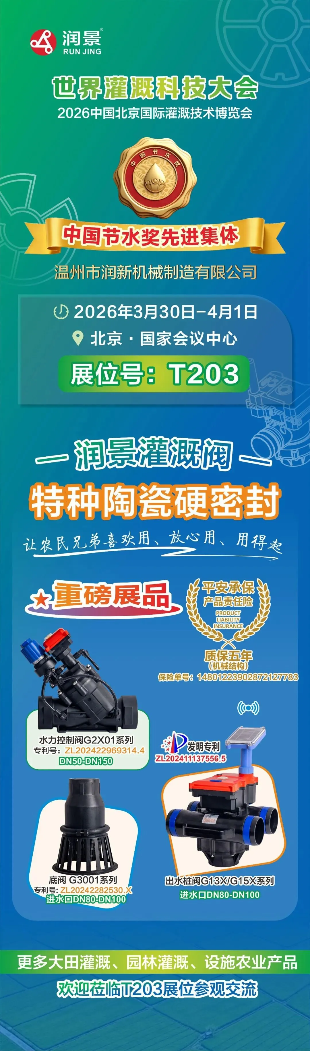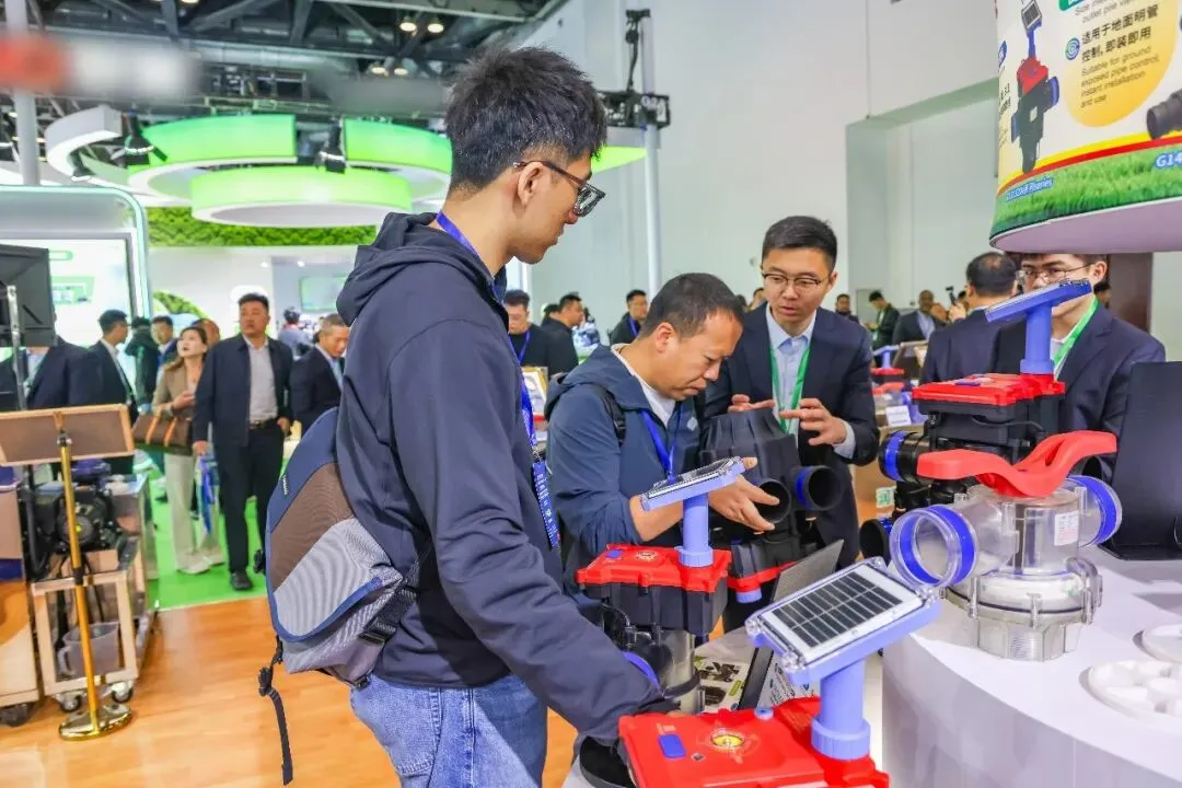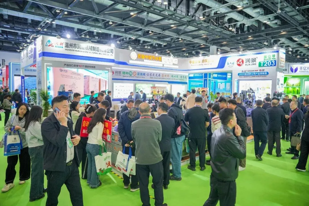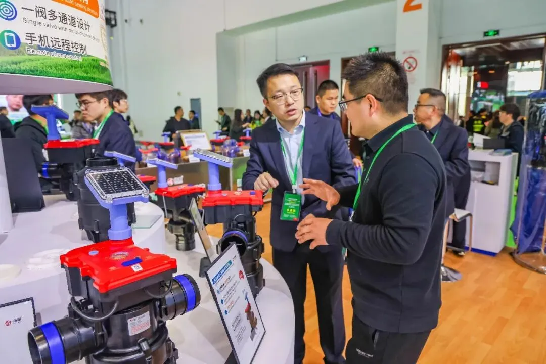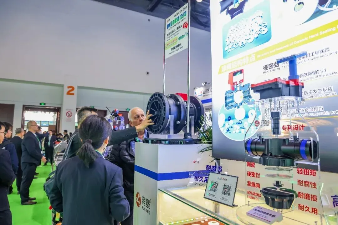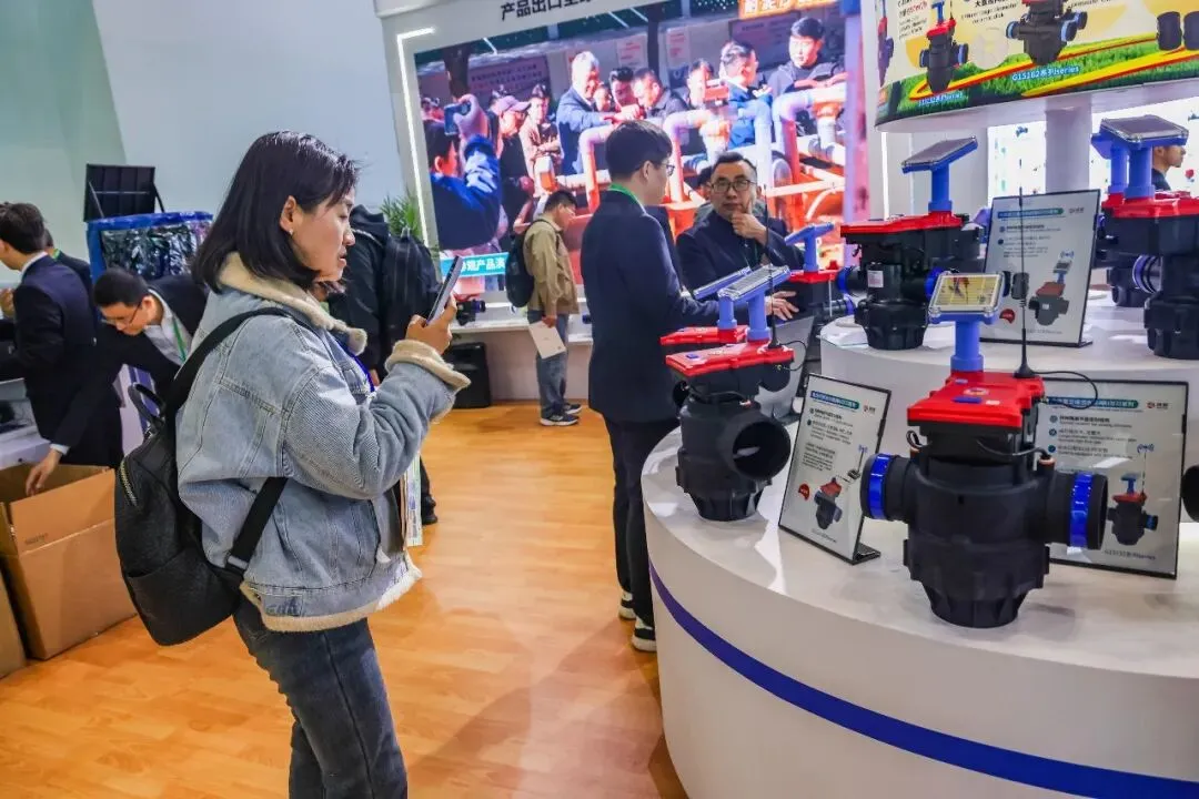 润新公司携润景170mm大直径陶瓷阀芯的大流量出水桩阀G13X/G15X系列、适用地面明管安装的侧进水出水桩阀G14系列、法兰连接/卡箍快接/电池可拆出水桩阀G13X系列、数字化出水桩阀G13X系列、出水桩角阀G12142X-100、DN200电动轴流阀G7401D-200(专利号:ZL202422543806.7;ZL202522554610.2)、带手动功能的电动水力控制阀、电动持压阀G2X01系列、DN80电动反冲洗阀F146B、吸肥阀G82142D、水肥配比阀G83222D-50、DN25-DN50直通阀G62142D、DN25-DN50角阀G52142D等近20款新产品,以及比例减压阀G4001系列、底阀G3001系列、水肥一体机RJ-SF301、叠片式过滤器RJ-DF系列、70m³/h大流量自动控制阀F153、泳池(砂缸)过滤器F139系列、家用智灌阀等产品惊艳亮相展会,获评“20强品牌年度大奖”,展位人气火爆,客商络绎不绝。