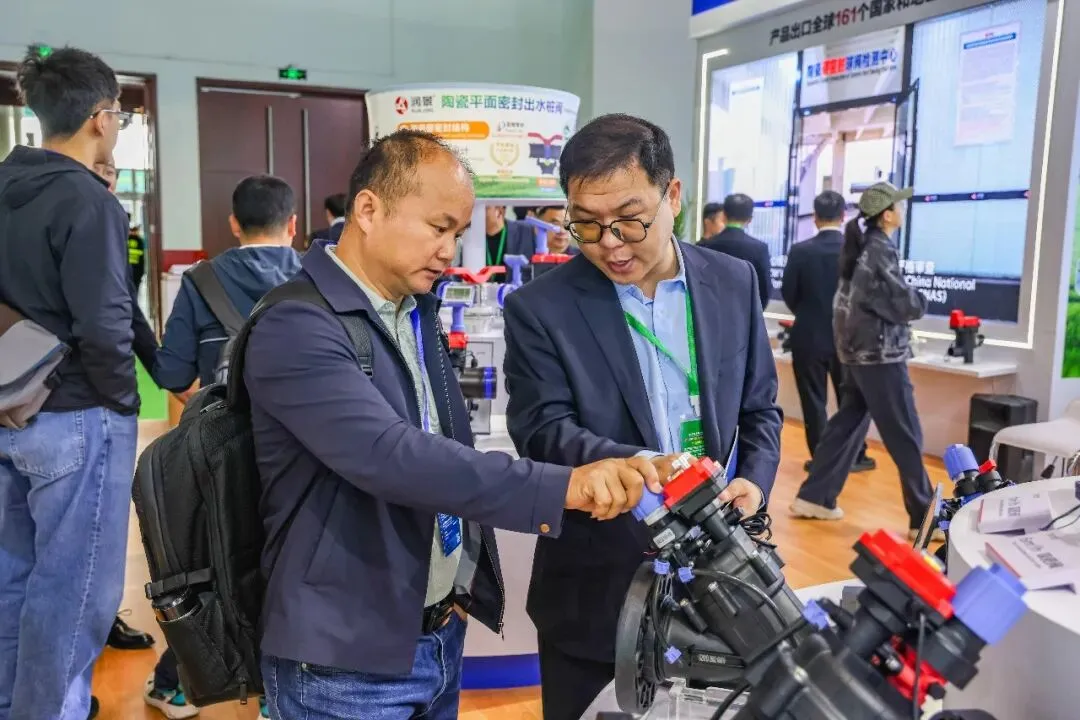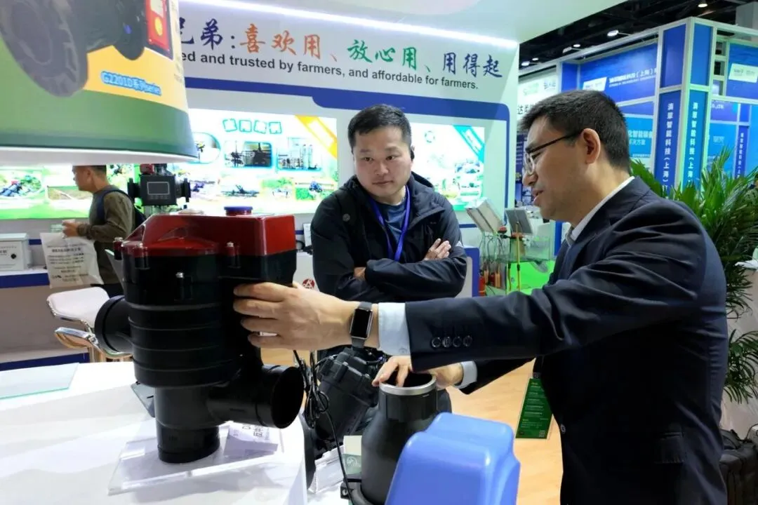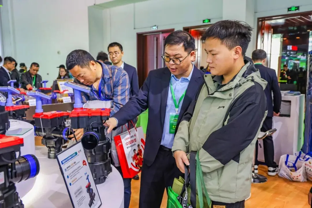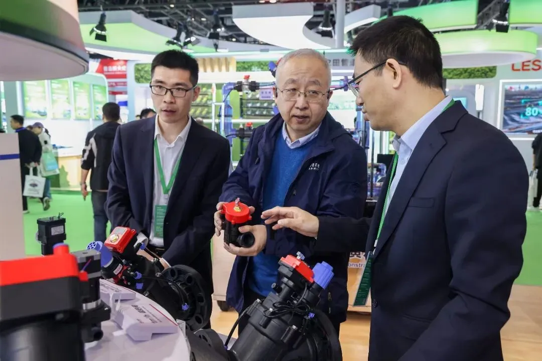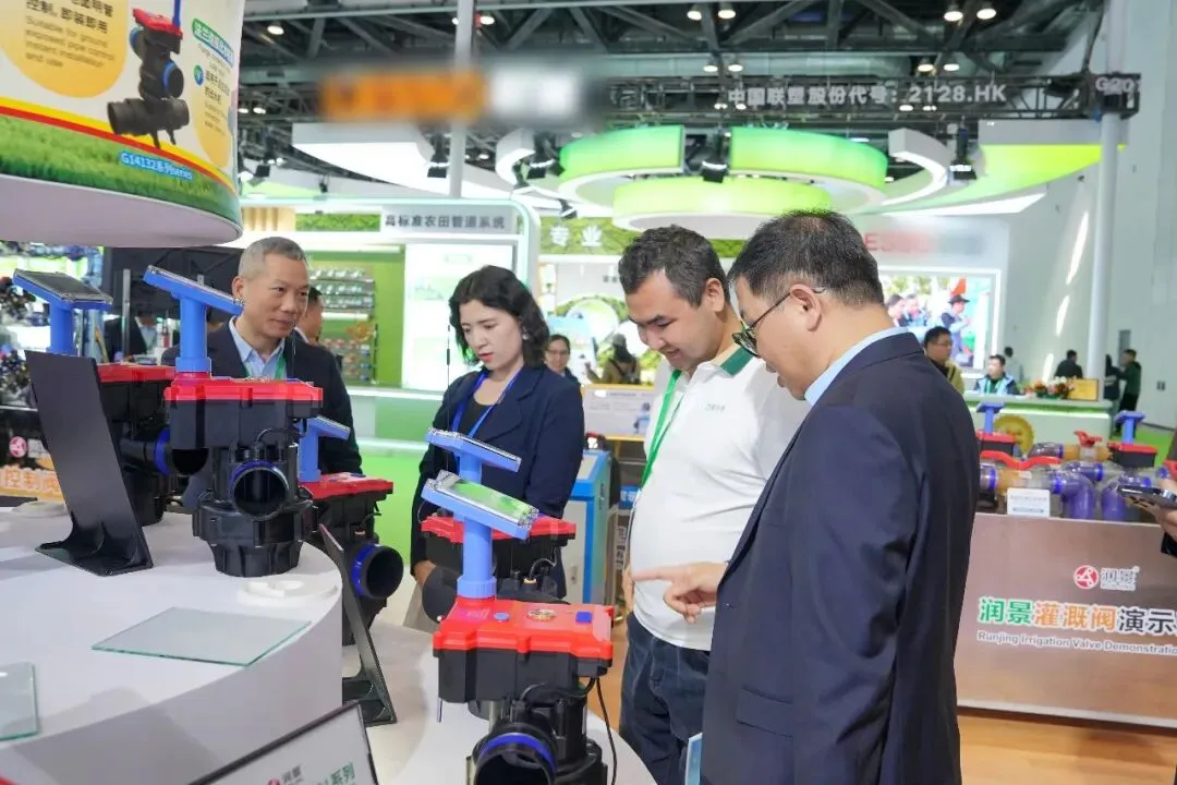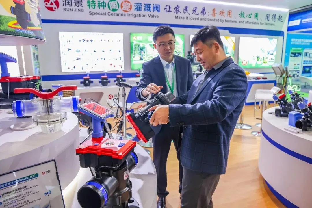 中国水利企业协会灌排设备企业分会专家顾问组成员门旗,山东现代农业科学研究院院长田端华,中国农业大学教授李光永,中国农业大学教授严海军,知名灌溉技术专家张建平,灌溉人俱乐部创始人陈晴等专家学者、行业协会、头部企业代表莅临润新公司展位,观看润景陶瓷平面密封出水桩阀耐泥沙演示、水力控制阀模拟丘陵地况灌溉演示和吸肥阀演示,了解出水桩阀系列新产品开发情况,肯定润新公司特种陶瓷密封技术在灌溉领域的开发与应用优势,表示润景2026年新产品覆盖多元应用场景,展现了突出的研发实力与推进效率,期待润新公司为灌溉领域带来更多惊喜,实现“让农民兄弟喜欢用、放心用、用得起”的美好愿望。