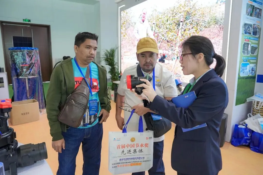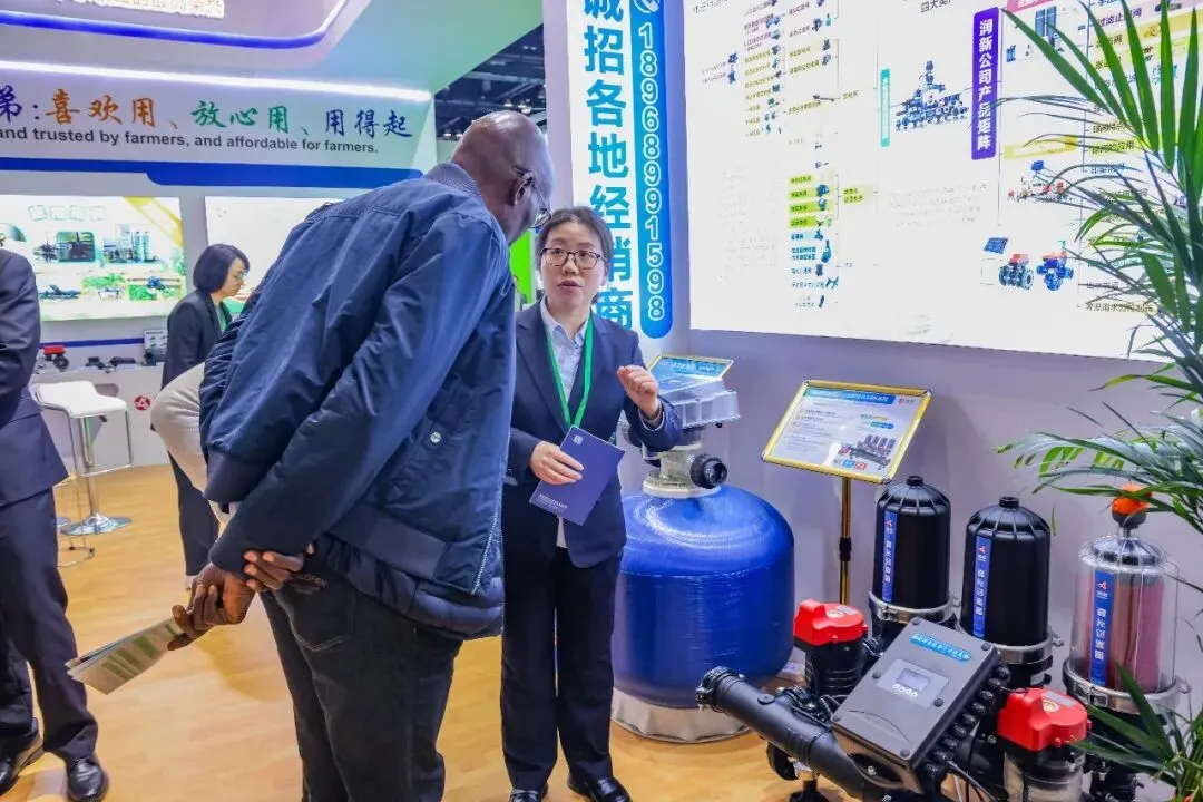 润新公司展位吸引俄罗斯、西班牙、罗马尼亚、阿根廷、智利、澳大利亚、乌干达、印度、孟加拉、泰国、马来西亚等10余个国家和北京、新疆、内蒙古、河南、河北、山东、广东、广西、上海等地农业灌溉、设施农业、农业种植、农业工程配套等行业客商驻足围观。