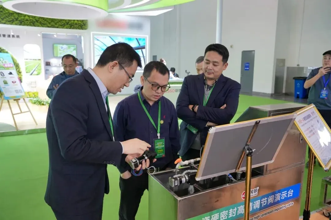客商们认真观看润景出水桩阀耐泥沙演示和水力控制阀泄压、减压持压、稳压、低压启闭功能演示,详细咨询产品功能特点和适用场景,现场咨询声、洽谈声此起彼伏,人气持续攀升。大家纷纷表示,特种陶瓷在耐泥沙磨损、耐水肥腐蚀方面优势明显,润景灌溉阀产品线全面、研发实力强,希望润新公司持续发挥特种陶瓷密封技术优势,不断丰富灌溉产品线,满足更多场景的使用需求。