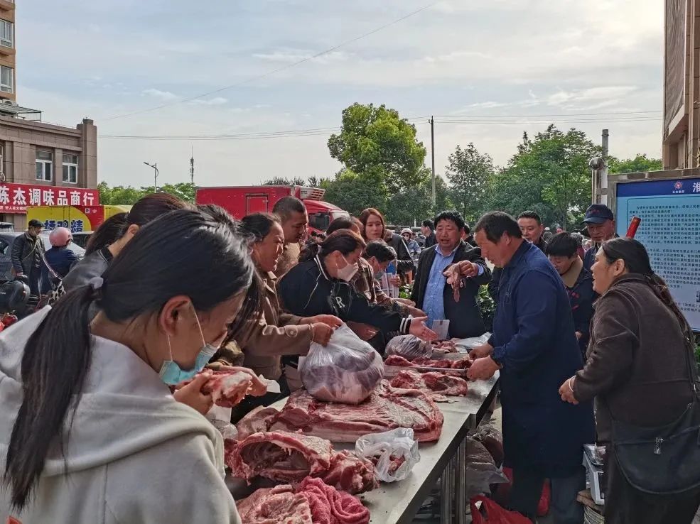 门店现场气氛火热,吸引众多居民前来购买肉品。淮浍食品公司负责人朱意介绍,公司所有产品均通过严格的动物检疫,确保所有的猪肉产品检疫合格、质量保证,让广大消费者吃到放心、安全、健康、平价的猪肉产品。