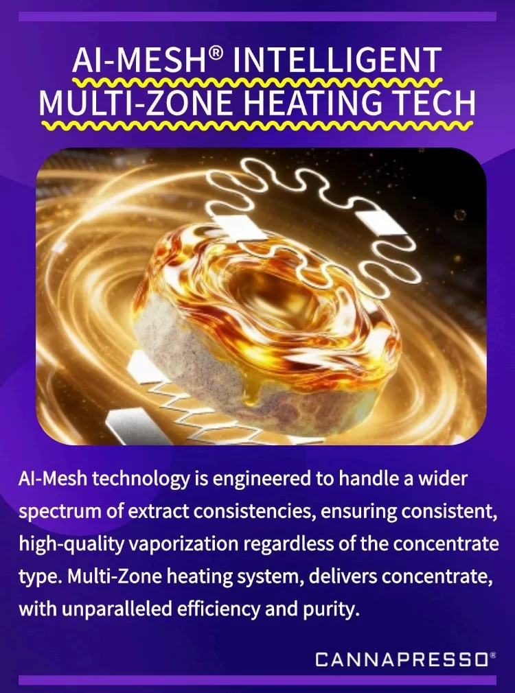 Cannapresso 推出搭载 AI-Mesh® 智能多区加热技术的新品,通过多区域加热实现雾化效率与纯度的双重提升,适配欧美市场对雾化体验的高要求;