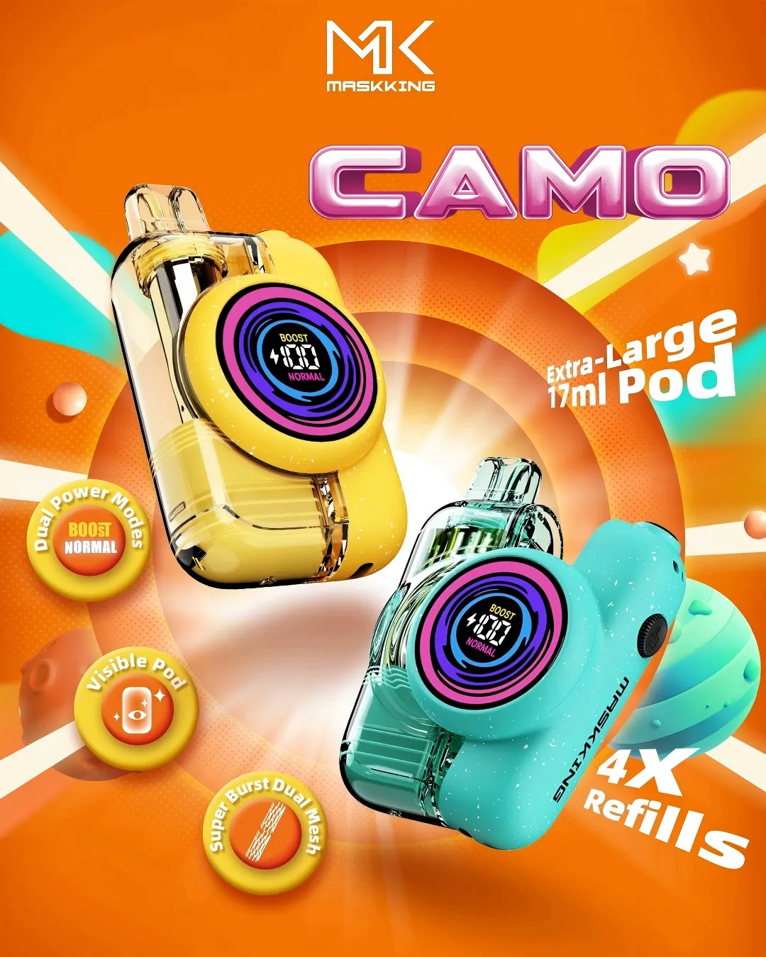 此外,MASKKING 发布 Camo Pod Kit 新品,搭载模块化磁吸平台技术,实现不同烟弹的快速切换,通过结构创新提升产品的实用性与便捷性,这类技术创新成为品牌差异化竞争的关键。