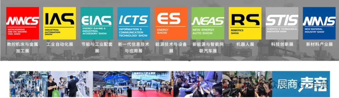 9大专业展:MWCS数控机床与金属加工展,IAS工业自动化展,RS机器人展,GLCS绿色低碳与,工业节能配套展,ICTS工业新一代信息技术与应用展(FTIS空天陆装备展),ES智慧能源展,STIS科技创新展和NMIS新材料产业展,