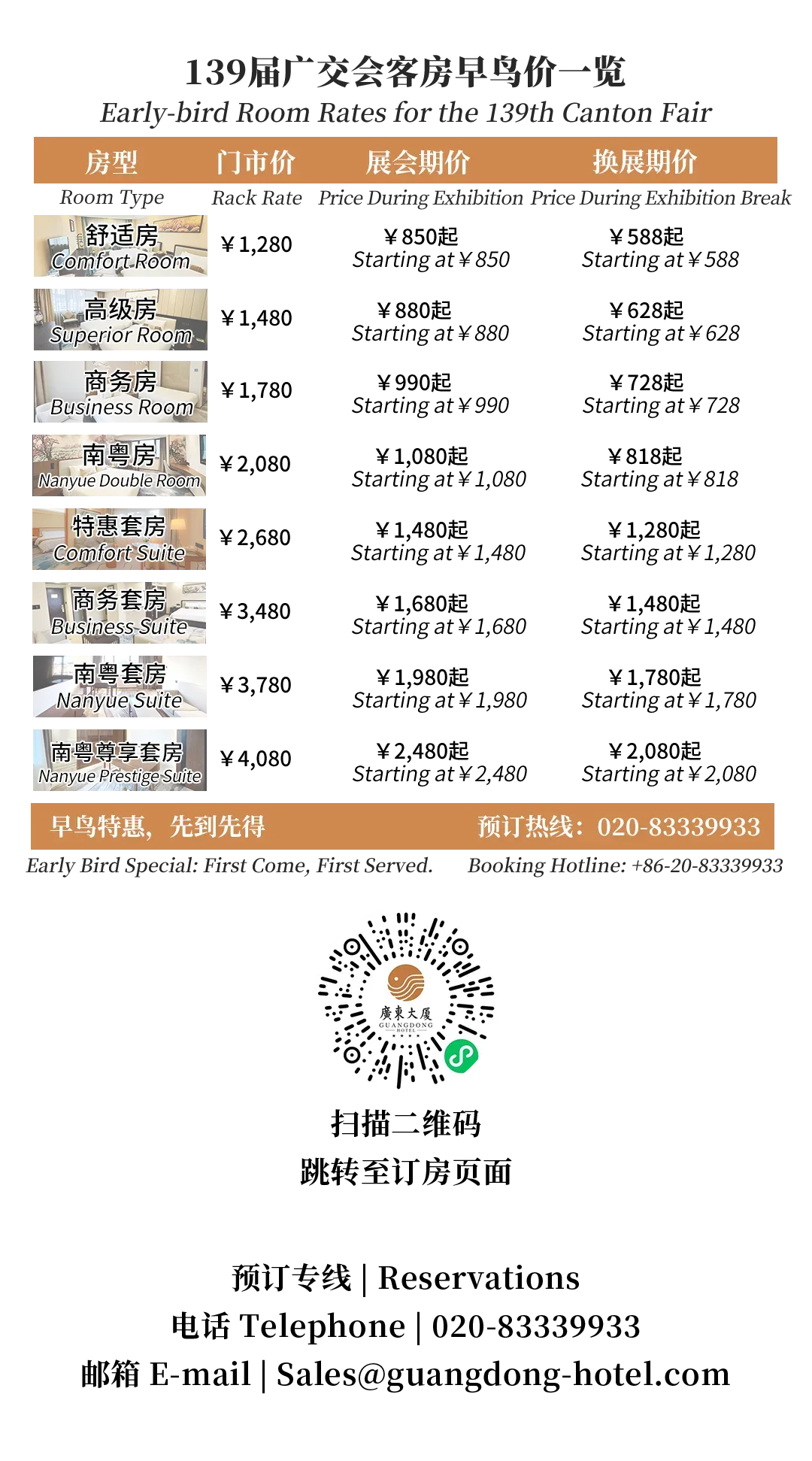 垂询与预订请致电