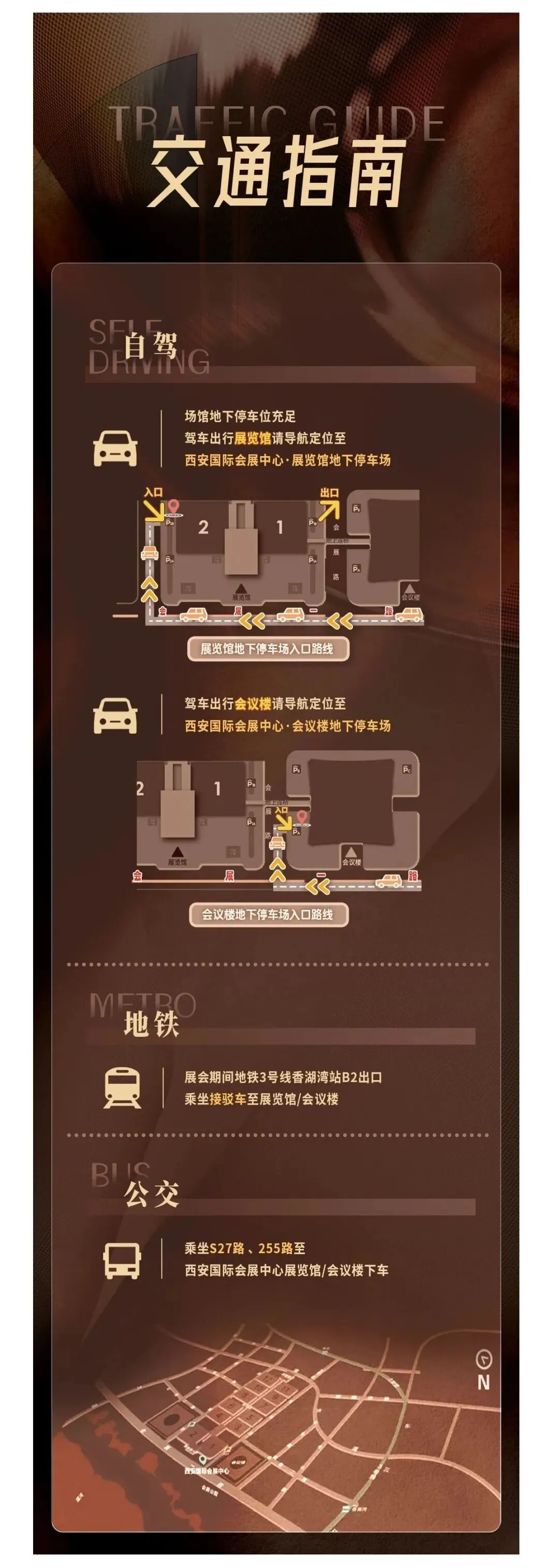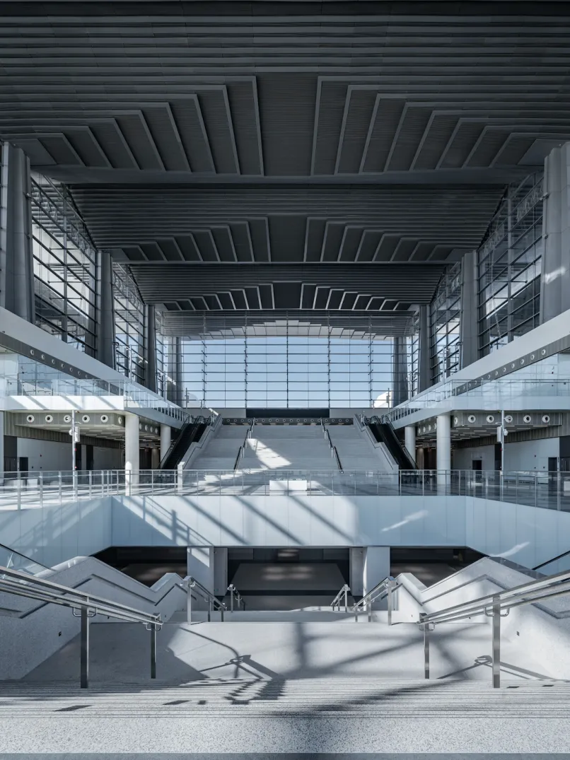 Xi'anInternational Convention and Exhibition Center islocatedat No. 999/1399, Exhibition First Road, Chanba Ecological District, on thenorthern bank of the Ba River and to the west of the East Third Ring Road. Thisexpansive venue boasts state-of-the-art facilities, comprising two mainsections: a conference centerand an exhibition hall.