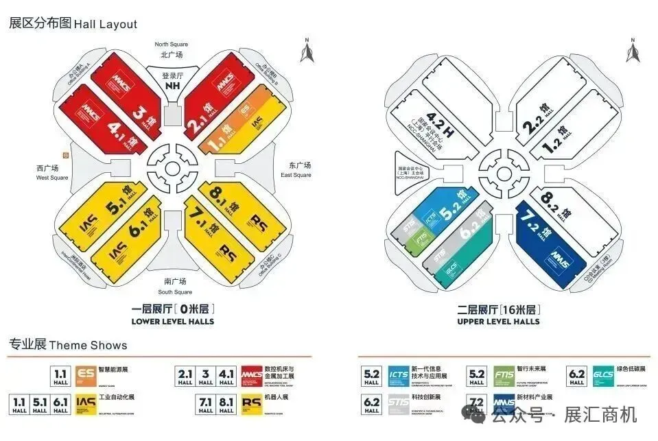 9大专业展:MWCS数控机床与金属加工展,IAS工业自动化展,RS机器人展,GLCS绿色低碳与,工业节能配套展,ICTS工业新一代信息技术与应用展(FTIS空天陆装备展),ES智慧能源展,STIS科技创新展和NMIS新材料产业展,