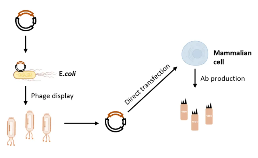 纳米抗体发现服务:纳博生命采用改良噬菌体展示和哺乳动物细胞展示两种技术路线为广大客户提供优质的纳米抗体发现服务。改良噬菌体展示是通过一套质粒系统同时实现噬菌体文库制备和哺乳动物细胞抗体生产的技术平台,高效实现噬菌体筛选到哺乳动物细胞生产的无缝衔接,在不增加周期的前提下,提高抗体筛选/验证服务质量;哺乳动物细胞展示筛选对抗体构型无限制,筛选抗体理化性质更好,序列特异性更高,轻松实现全程“可视化”的流式筛选。