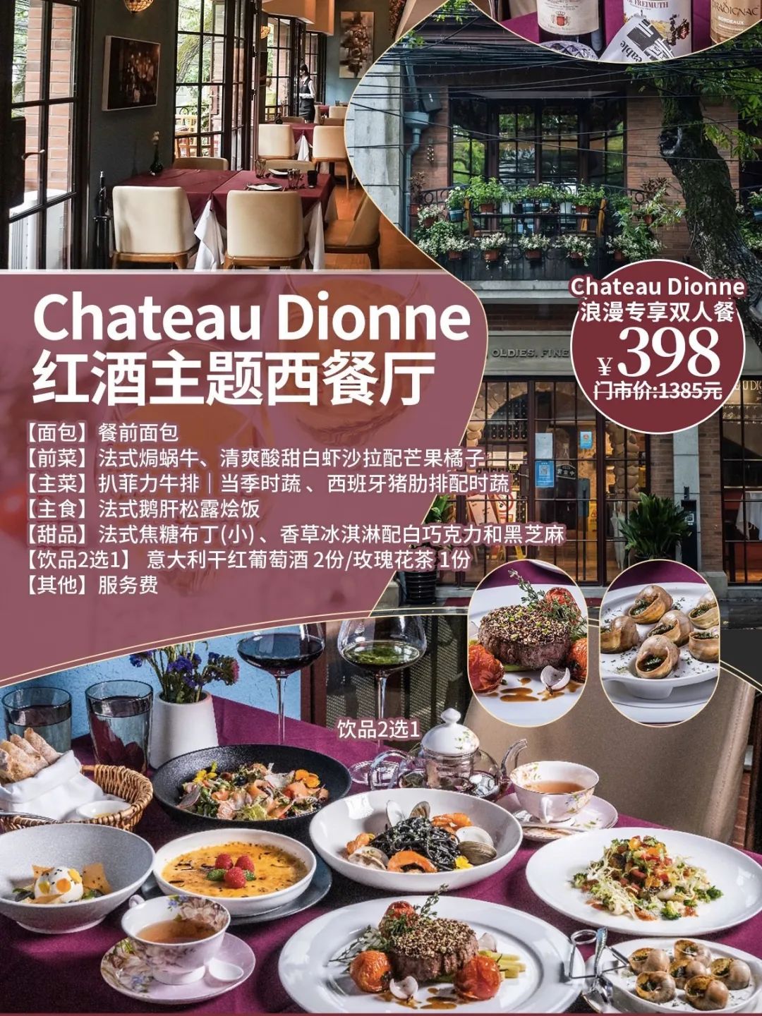 【Chateau Dionne红酒主题西餐厅】建国西路店 398元浪漫专享双人餐!
