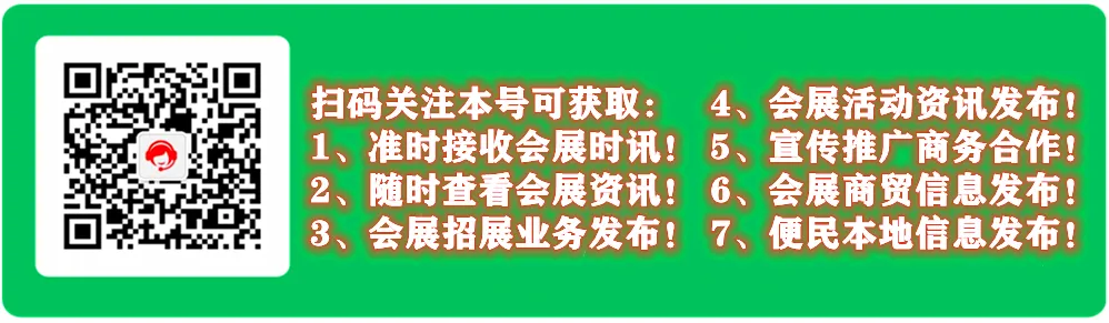 说明:本文素材由会展举办方提供,部分素材来源综合互联网,转载引用的目的在于行业资讯,得到更广泛的传递与分享,不做商业用途!版权归属原创作者所有。若无意间侵权,或有与您相关联的信息,不希望被展示,请在公众号对话框留言,我们核实后,会及时删除相关信息。以上资讯仅供参考,部分展会展期可能会出现,延期或调整等情况,具体信息以举办方公布的为主。