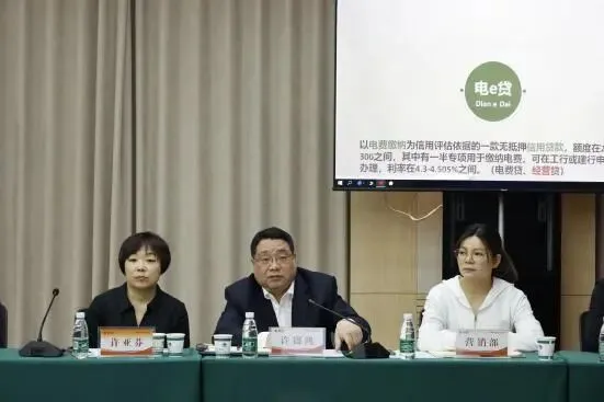 本次会议邀请了国网英大人寿保险公司和国网租赁公司的专家团队。国网英大人寿保险公司详细介绍了“电e盈”“电e贷”“电e票”“电e证”“碳e融”“碳保保”六款电e金服产品,重点介绍产品特点及优势、企业适用范围及规模。国网租赁公司详细讲解了电动汽车的租赁、贷款等业务,两家单位通过互动的方式为在场人员答疑解惑。