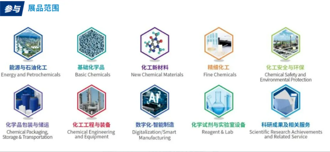 展出抗肿瘤药物中间体、高端农药原药等高附加值精细化学品;同时呈现数字孪生工厂、工业互联网平台、AI 工艺优化系统等智能制造解决方案。