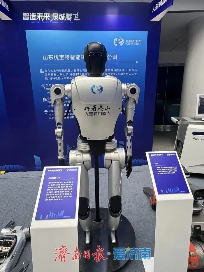 活动分为展览展示和对接洽谈两个环节,展览设置“产业全景”“科技前沿”“工业机器人”“服务机器人”“特种机器人”“人形机器人”“配套赋能”七个展区、数十个展位,通过“机器人互动+视频多媒体+宣传展板”等多模态方式,全面展示产业核心技术成果和代表性产品,人形机器人、轮式双足机器人、外骨骼机器人、手术机器人、物流机器人、防爆机器人等一批知名机器人产品集中亮相。参展企业中,既有兰剑智能、山东德晟机器人、亚历山大智能科技、国网智能等本地骨干机器人企业,也有上海等地的优势企业,广大企业携手合作,共探发展新路径。济南机器人产业发展的底气来自于企业的实力。现场,济南本地机器人分外吸睛。“这款‘机器狗’(四足机器人)不仅可以驮起重物,还能提供情绪价值,比心作揖握手打滚,信手拈来。”山东优宝特智能机器人有限公司刘工介绍,“去年开始,通过搭载激光雷达、深度相机、UWB模块等先进传感器设备,能够实现高精度环境感知、定位与跟随,他们组成‘泰山汪汪队’曾经一度登上热搜,开启运送货物、清运垃圾的打工之旅”。展览现场,新一代“行者泰山”人形机器人亮相,引来参观者驻足。这一身高170cm、体重43kg的人形机器人,可以完成行走、踏步、跑步、举手、摆臂、转弯等多种动作,能以每小时7.2公里的速度稳定奔跑,达到国内领先水平,具备高度的灵活性和稳定运动能力。 “今天带来的是重达230公斤的重载机器人,搭载5G+远程机器人运维系统,主要用于复杂大负重机床上下料等各种智能终端使用。目前已成为工信部重点试验场景项目。”山东德晟机器人股份有限公司常务副总兼技术总监谢祥科介绍,公司坚持自主创新发展战略,已建立完善的知识产权体系,累计获得148项自主知识产权授权,其中十余项发明专利在高端装备制造领域填补了国内技术空白。在冶金工业、钢管制造、汽车零部件等关键行业,公司成功解决了多项制 约产业升级的“卡脖子”技术难题。 目前,济南市拥有各类机器人企业近百家,核心技术不断突破,产业生态加速优化,优势产品覆盖变电站巡检机器人、线路除冰机器人、自主型海底探测机器人等产品,广泛应用于冶金、电力、汽车制造、建筑等细分领域,销往全国30多个省、市并出口到国外100多个国家和地区。这一场展会,就是本土机器人产业的一次“大阅兵”,也是同台沟通交流,共谋合作发展的“新平台”。打造好平台,吸引“凤凰”来。“虽然目前我们的生产基地都在上海,但这一次,来到济南,非常看重济南丰富的医疗资源,提供丰富的医疗数据支持。”上海术之道医疗科技有限公司总经理杨思图说,“济南市工信局和济南机器人产业发展专班为我们带来了比较好的扶持政策,依托山东这一全国制造业大省,95%的机械制造都能在这里完成,定能助力企业不断壮大。”前期,市机器人产业发展办公室赴上海、西安两地对接洽谈项目,涉及物流机器人、工业机器人、服务机器人、具身智能、关键核心零部件等多个领域,积极推动机器人领域优质项目加快落地。抛出“橄榄枝”,引得企业来。本次活动将进一步提升济南机器人产业的知名度和影响力,进一步增强全市机关、国有企业、各类金融机构等单位对机器人企业的了解和认知,促进企事业单位开放适用性场景,帮助企业获取更多融资与合作机会,吸引更多机器人领域企业选择济南“群英荟萃”。