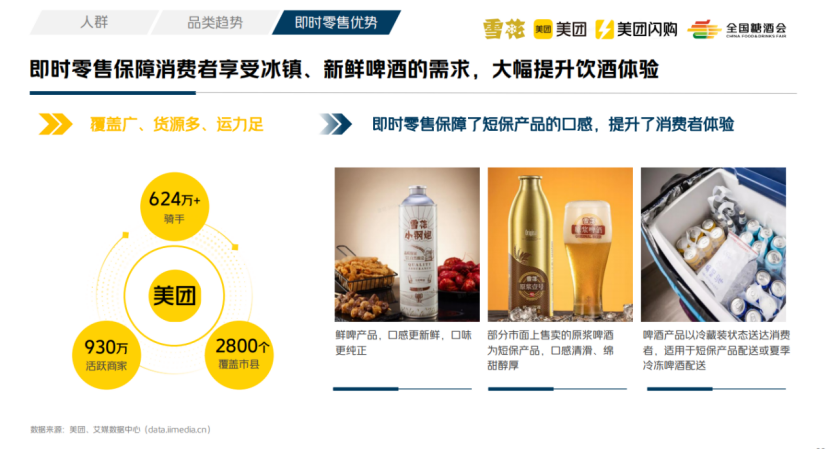 “即时零售”模式的诞生,为酒类行业带来了新的发展机遇,而酒类行业也对“即时零售”模式予以高度关注和积极探索。作为即时零售酒品消费的主要平台,美团对消费者需求有着深刻洞察。