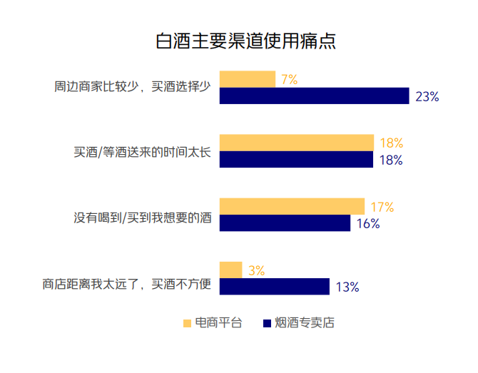 聚会、商务和宅家是白酒三大核心场景,即时零售能提升多场景表现,满足场景下的核心需求。比如与生意伙伴交际时,不用带酒,到餐厅就能有心仪的白酒,这能让请客者更有“面子”。即时零售配送速度快,门店、产品选择范围广,能满足消费者快速用酒的需求,补足其他渠道痛点。