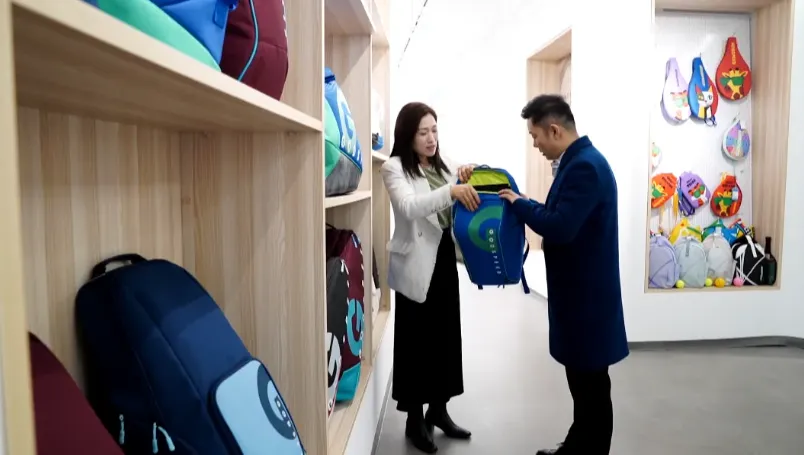 广交会结束,广顺箱包工业有限责任公司生产车间内已是一派热火朝天的景象,下料机、缝纫机高速运转,工人们正有条不紊地赶制网羽包订单,一件件搭载环保材质与专业设计的产品即将发往全球市场。近年来,随着全民健身战略深入推进,运动装备市场持续升温,公司精准捕捉运动箱包热潮,组建专项研发团队,打造出全新网羽包系列产品,成为此次广交会的“吸单利器”