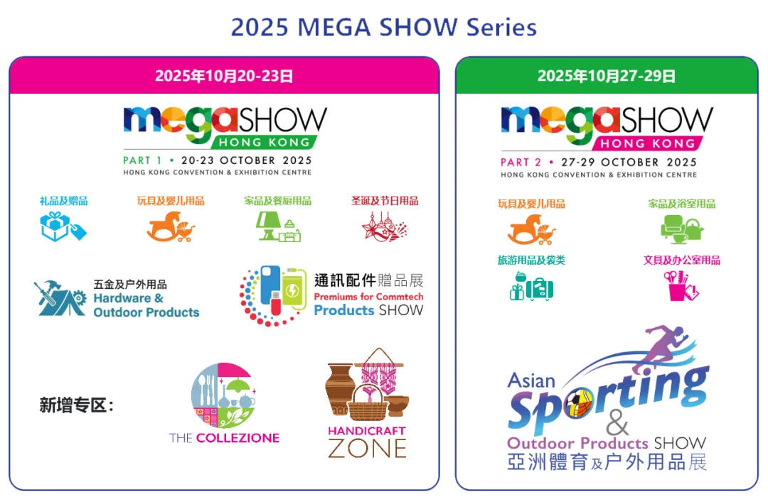 10月20–23日 / 27–29日,香港会议展览中心汇聚全球买家与趋势风向。一次参展,双展机会,让你的品牌与产品直达国际市场。
