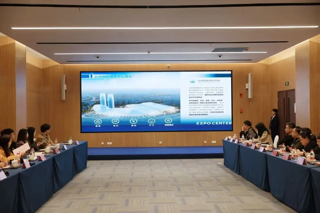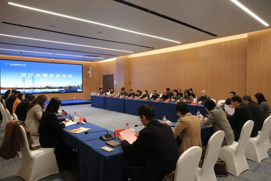 本次活动由浙江省会展行业协会牵头,汇聚省市会展行业协会代表、智库专家、会展企业代表等,以实地考察、座谈研讨、资源对接等形式,共商区域会展发展大计,共绘省市资源融合新篇。台州市商务局、台州市经信局、台州市贸促会、台州城投集团、台州国际博览中心有限公司等相关领导出席活动并讲话。