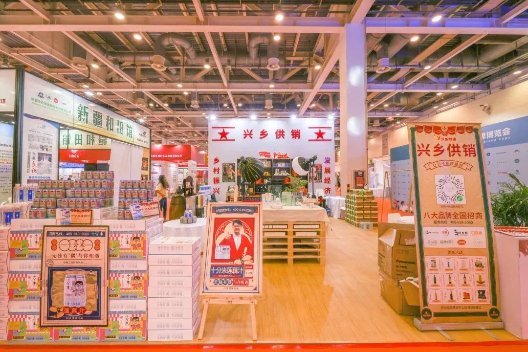 2023苏州国际品牌博览会展出数百家品牌企业。江苏兴乡网络凭借复古的展台造型、统一的服装成为展览现场最亮丽的一道风景线。