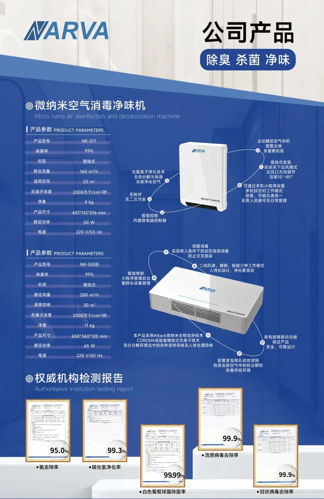 ● 白色葡萄球菌除菌率99.99%,冠状病毒去除率99.99%