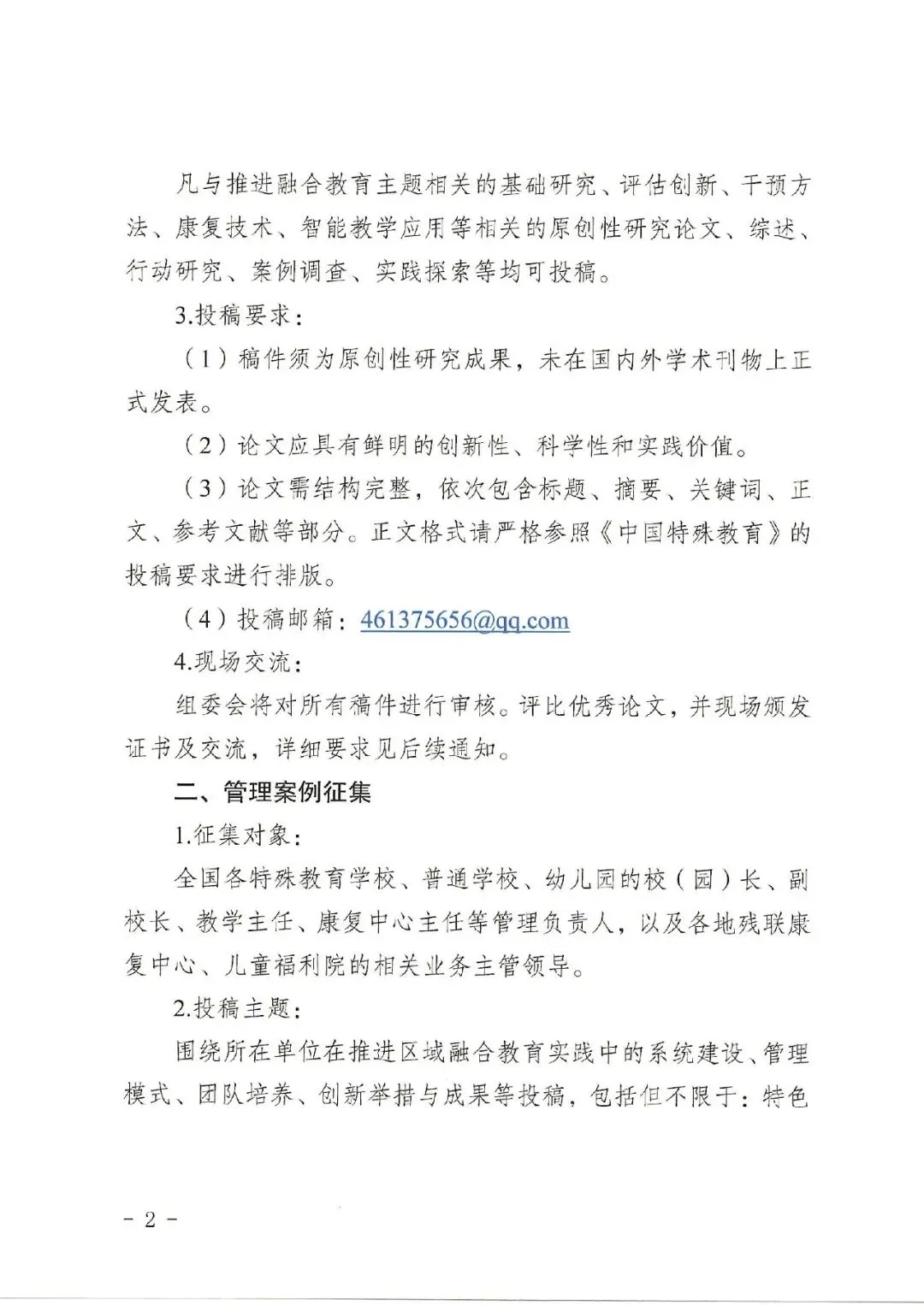 围绕所在单位在推进区域融合教育实践中的系统建设、管理模式、团队培养、创新举措与成果等投稿,包括但不限于:特色课程体系建设与管理经验、跨学科合作团队的建设与协同机制、教师专业发展支持与激励模式、融合教育或教康结合的校本化实施与推广策略、“家-校-社”协同共育模式的构建与管理、科研课题的管理与成果转化实践等。