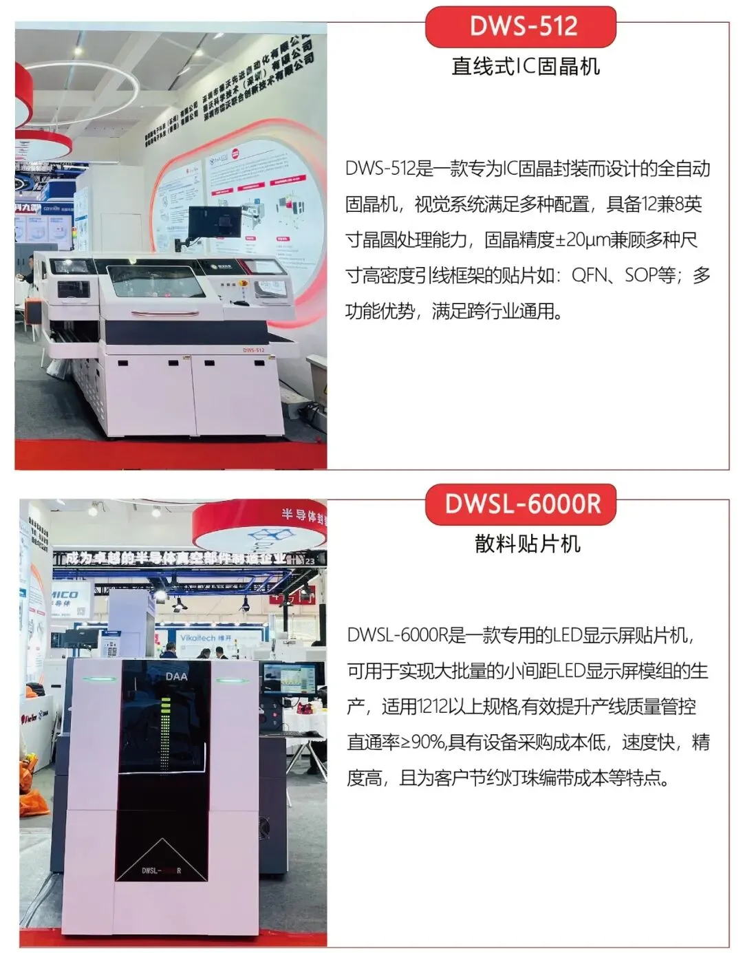2026年3月25日至27日,全球规模最大的半导体展会Semicon China 2026在上海圆满落幕。本届展会以“跨界全球,心芯相联”为主题,汇聚全球前沿技术,以创新之光照亮产业发展之路。德沃携全自动IC引线键合机、直线式IC固晶机、高(速)精度超薄上芯机及散料贴片机亮相展台,吸引了众多专业观众驻足交流。工程师通过设备演示与技术讲解,直观呈现产品功能与应用场景,充分彰显设备优势与德沃的创新实力。