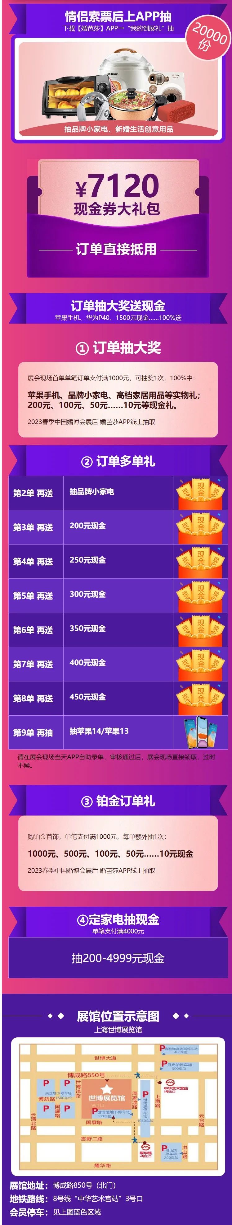温馨提示:欲逛展上海结婚新人可直接扫码免费索取2023上海婚博会门票,如现场购买需要花费50元。
