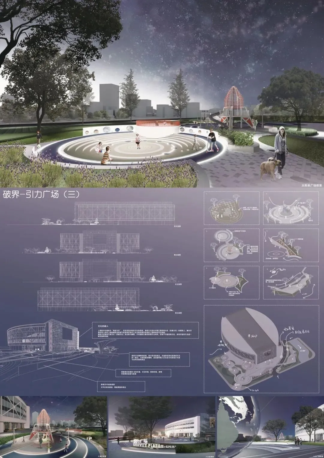 (三)预留的开放区域:预留足够的空间供路人穿行,还要保证商场大型促销活动以及附近居委组织的社区活动的场所和需求。此外,铺装的设计围绕着“引力”、“星空”相关主题形式,同时结合场地的设置,如星球广场(中心广场),就是太阳系的行星位置图,同时相对于儿童来说也是很好的科普知识内容。星球的图案,轨道元素的应用等又具备标识导向功能,形式结合功能在这里得到良好体现。