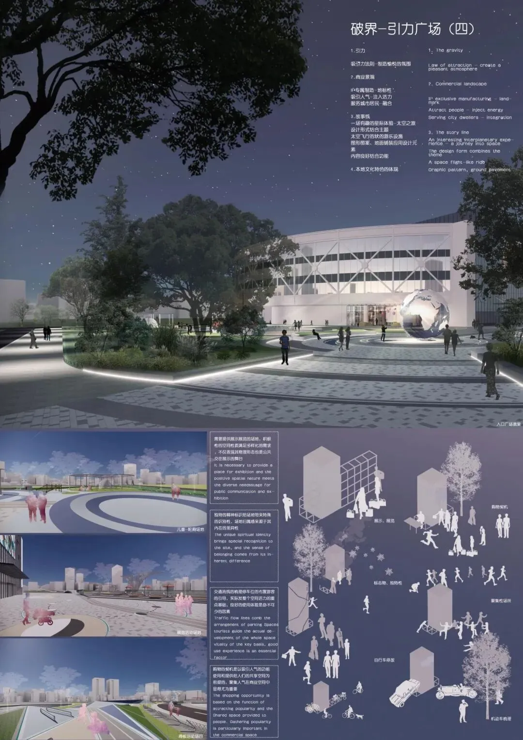 商业广场景观设计是商业建筑外场设计的重要组成部分。其目的是通过人性化的设计,更好的营造商业气氛。而商业空间需要聚集人气,吸引人流量,从而促进经济的流动。设想,如果这个空间可以像地球或者宇宙中别的星球一样自身就具备引力相互牵引,那么就会有源源不断的人来广场进行互动。
