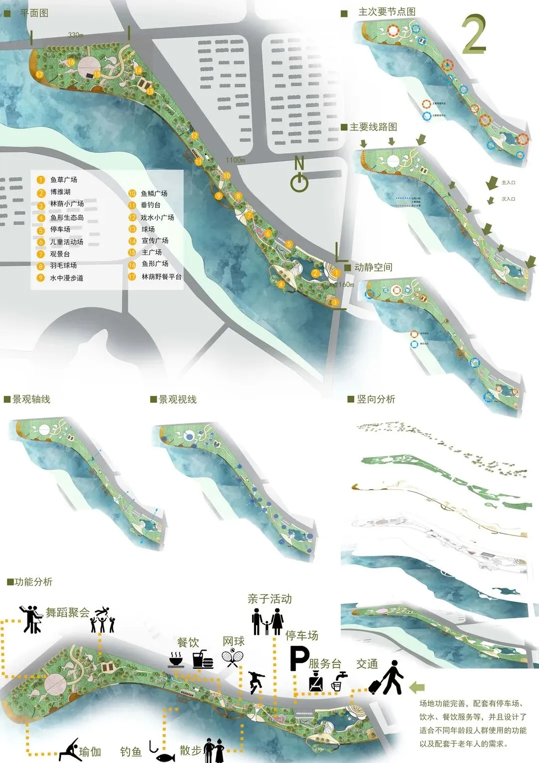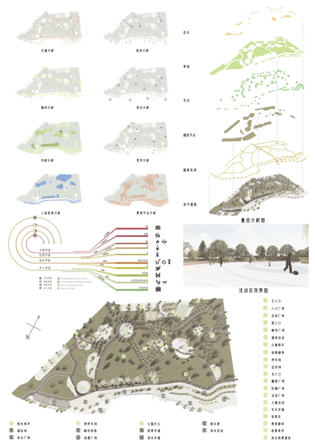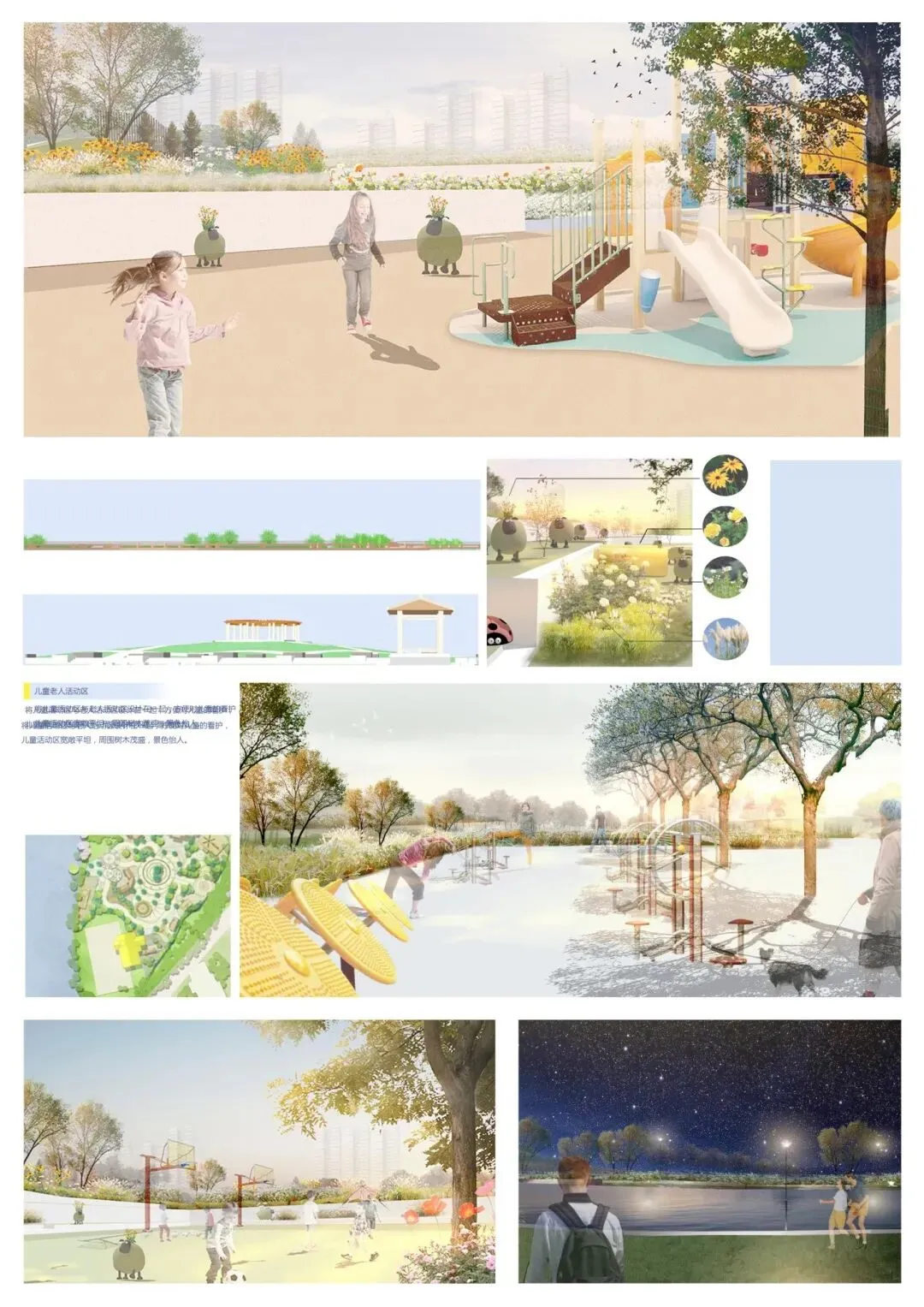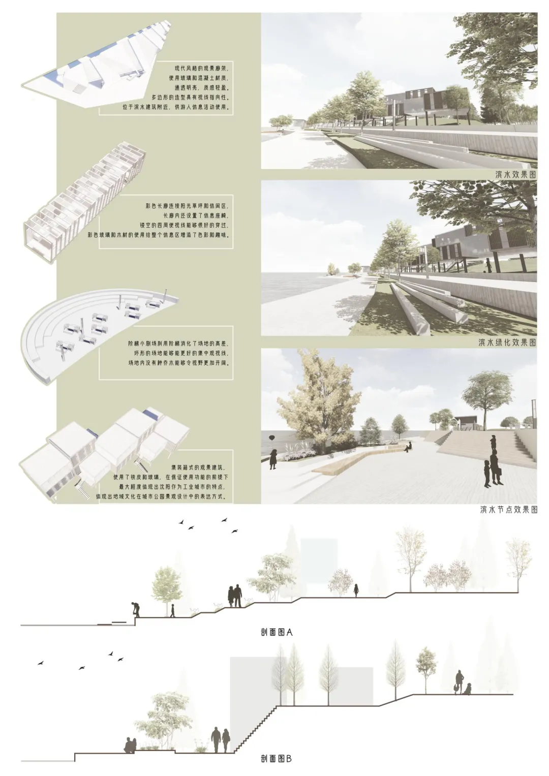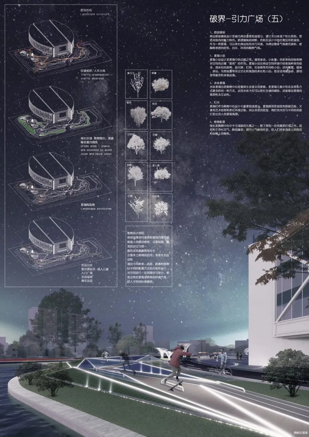 (二)临河的青年活动场地:滑板是当前青少年非常热衷的娱乐活动,因此设置这一场地必定是可以聚集人气。考虑其具有相对的危险性,位置设置在避免影响过多行人的位置。