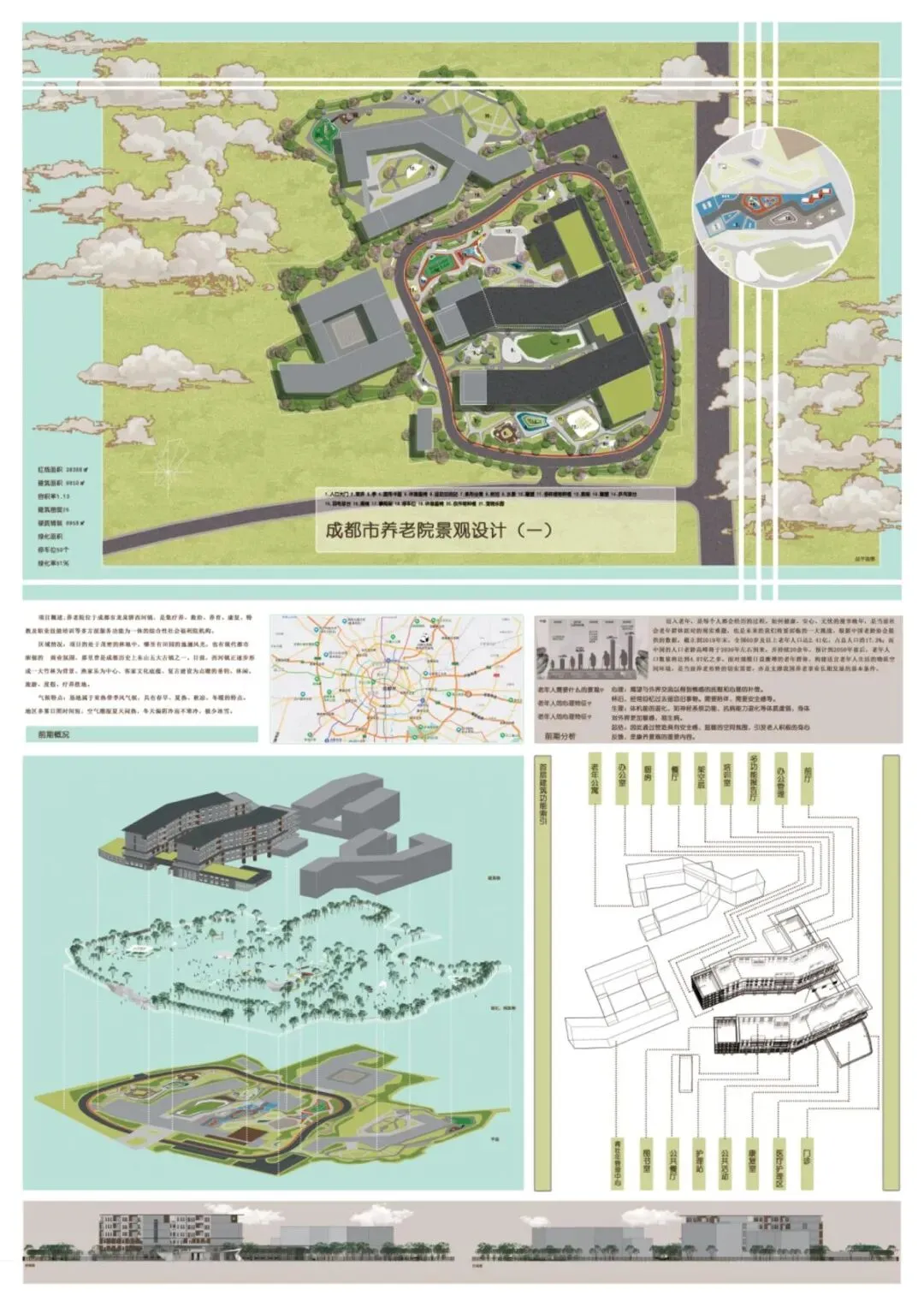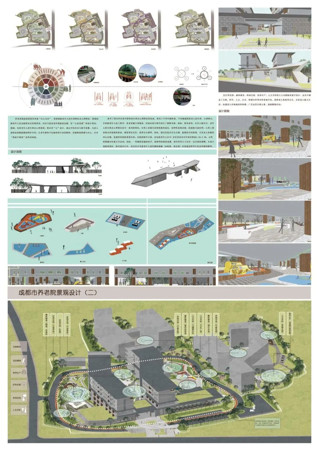 养老景观建设需要更多地“以人为本”,需要根据老年人的生理特征及心理特征,准确把握老年人的功能需求及景观需求。回应当前适老环境建设议题,用“心意景观”的设计理念,接纳、包容老年人的生理及心理需要;然后用“心”设计,透过空间布局与细节设置,为老人建构如家般温暖的照护空间。让老年群体不仅能得到专业的照料,还能释放情感与内心,安享“离家不离家”的养老体验。本设计参考了国内外对老年群体的生理及心理特征的论述,研究了不同年龄阶段、不同健康程度老人的生理、心理特点,并依据老年人体工程学、养老设施专项规范,对相应设计细节进行了斟酌考量。