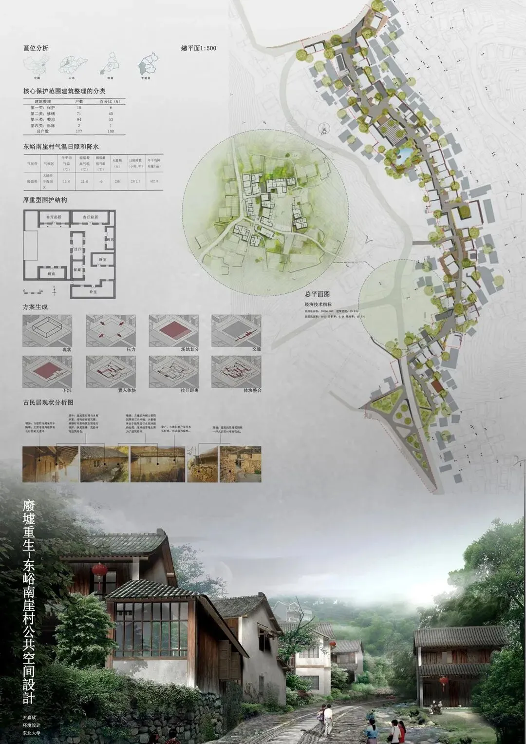 项目位于济南市平阴县洪范潭镇,建设地点位于东峪南崖古村落中部村委会公共空间,村子的东面是大寨山省级森林公园;西边是翠云山的省级森林公园;在南方,低山被云翠山和大寨山环绕。在村子的西北角,扈泉和墨泉流入郎溪河。它属于丘陵沟壑区。城墙建在村子的西边,大门位于中间,外面有水流。这个村庄三面环山,山峦起伏,景色优美。项目用地面积大约为4600平方米,地形起伏较大。把该区域划分了政治文化、娱乐、交谈、休憩等功能分区,营造一个环境优美,结构合理的公共空间。