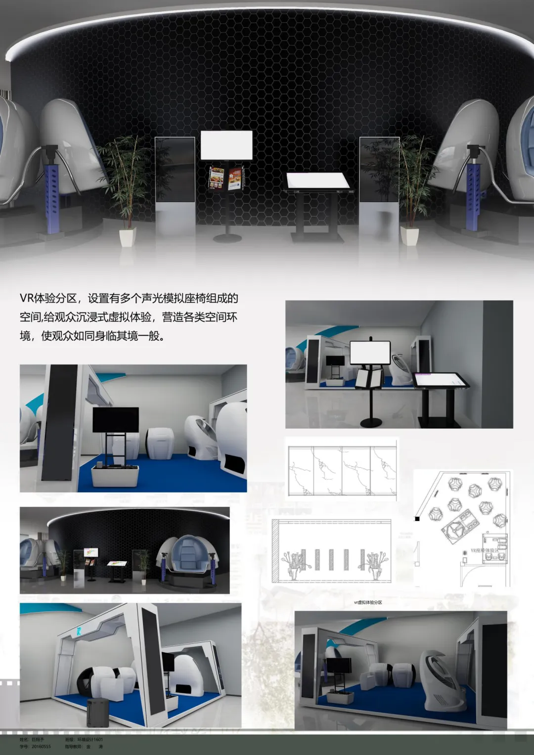 设立独有区域,放置vr模拟座椅、大型触摸屏幕等科技设备,实现虚拟化、沉浸式的观赏体验,并且在展馆各处都放置有少量公共体验装置,观众可以随时使用。