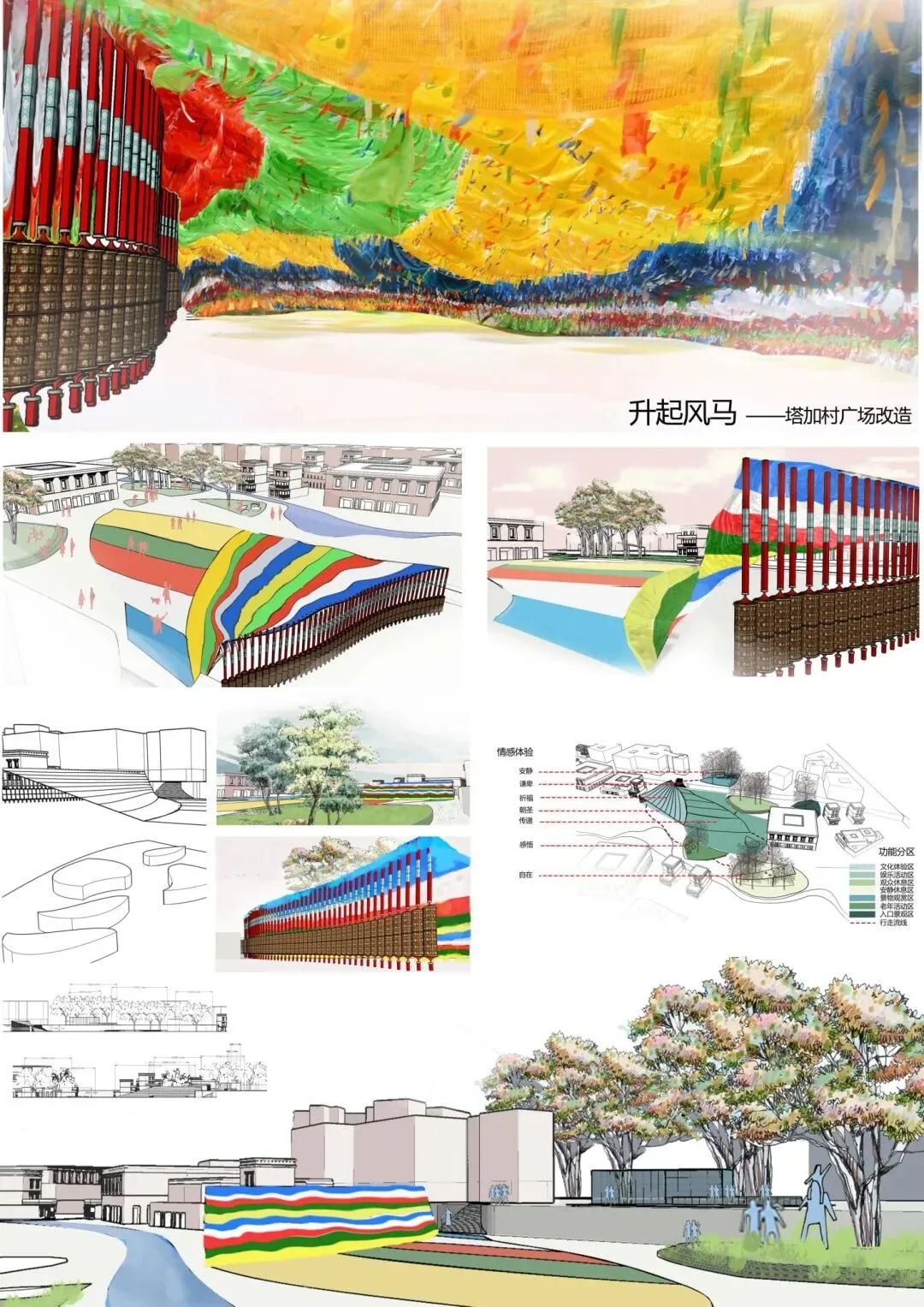 在乡村振兴易地扶贫搬迁的浪潮下,许多移民新村拔地而起,几乎全部是推倒重来亦或是另辟新地,无论如何模仿和研究乡土秩序,设计几乎很难回应自然而然的传统村落的肌理,同时多个自然村的村民的集中安置,是对其村民生产生活的行为秩序的打散与重组,若有所不当,就会造成新的隔阂与矛盾。由此,本次设计,我将以民族文化为核心,原生态保护为原则,通过公共空间的秩序恢复和散点的分布规划来化解新旧隔阂,恢复乡土文化的自信。主要的设计场地包括村委会及其门前广场,村民活动中心,以及儿童活动中心三大部分。文化设施的建设是新一轮的乡村建设重要的组成部分,乡村图书室、文化站、大舞台等等一些列文化设施在新农村运动下被建成,然而多数设施没有很好的发挥应有的文化效能,大多处于闲置和荒废状态,乡村应该有一个怎样的文化空间,作为乡村文化标志性建筑的戏台应当以怎样的面貌出现在当下,是本方案设计所解决的问题。