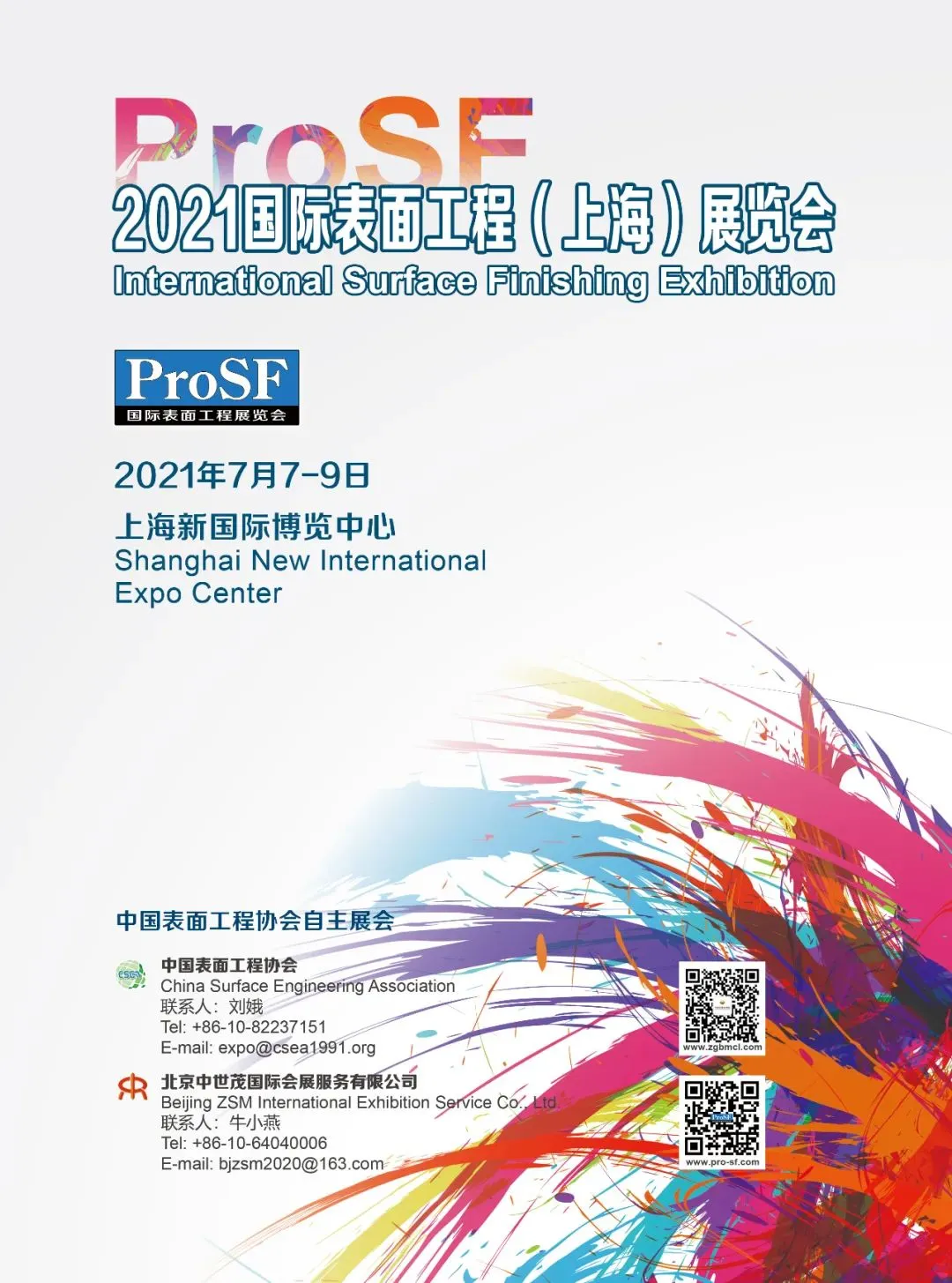 ProSF 2021国际表面工程(上海)展览会将于2021年7月7日~9日在上海新国际博览中心举办,ProSF表面工程论坛、2020年度“中国表面工程协会科学技术奖”颁奖等系列行业展会及活动。届时亦将会是2021年表面工程行业的又一场令人瞩目的盛会。