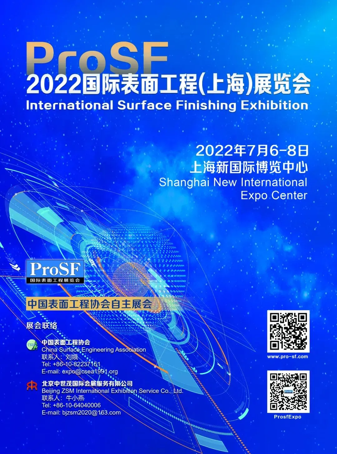 ProSF 2022国际表面工程(上海)展览会定于2022年7月6日~8日在上海新国际博览中心举办,ProSF表面工程论坛、2021年度“中国表面工程协会科学技术奖”颁奖等系列行业展会及活动。届时亦将会是2022年表面工程行业的又一场令人瞩目的盛会。