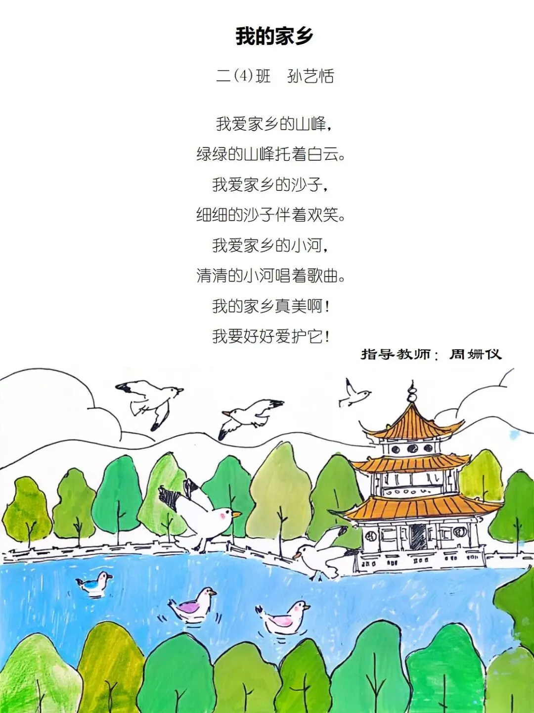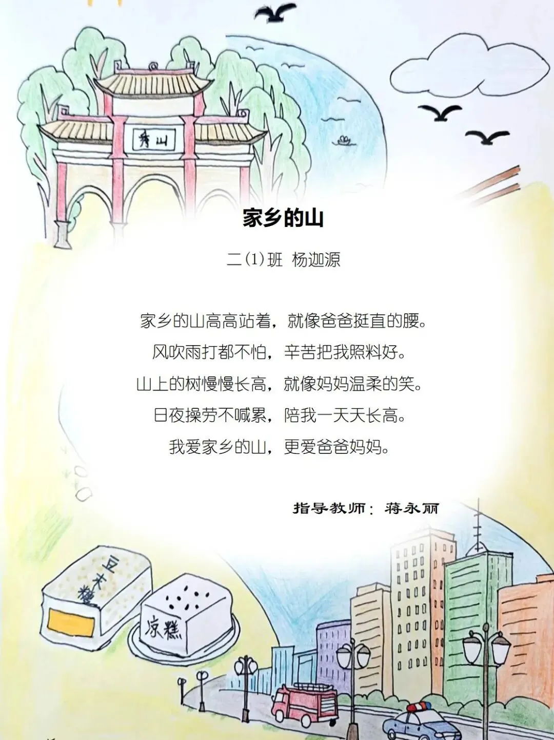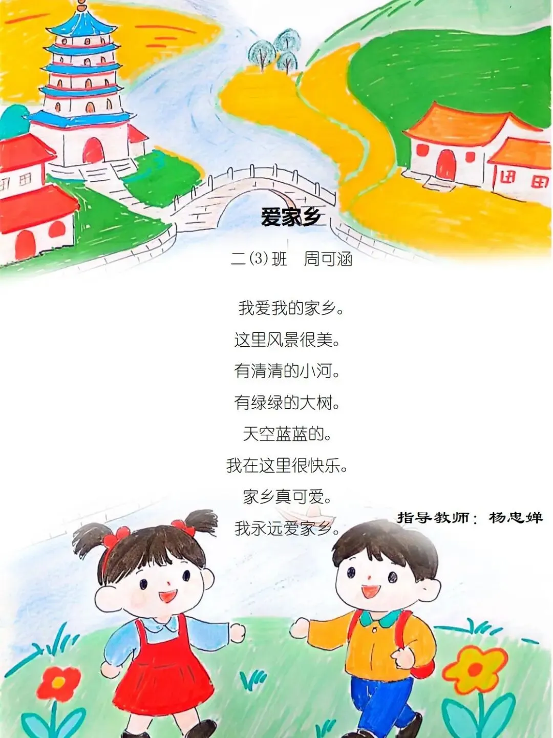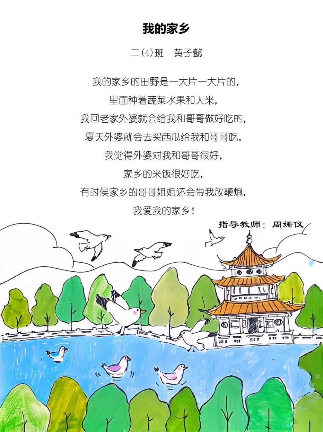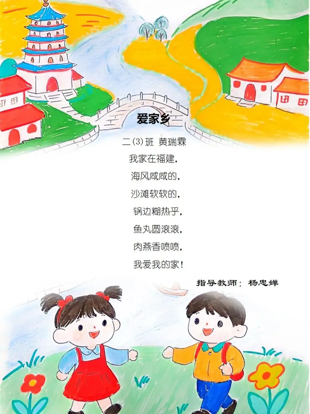 一方水土养童心,一脉相承一家亲,七班的小诗定格家乡美好瞬间,字里行间满是甜甜的乡土情与浓浓的家国爱。