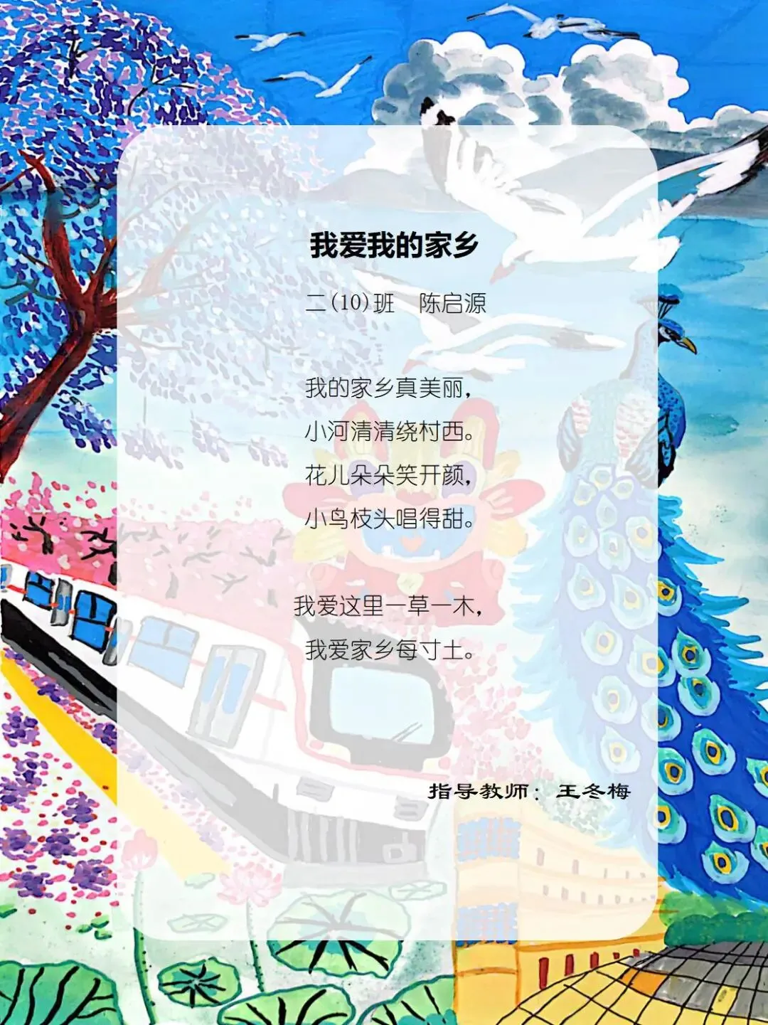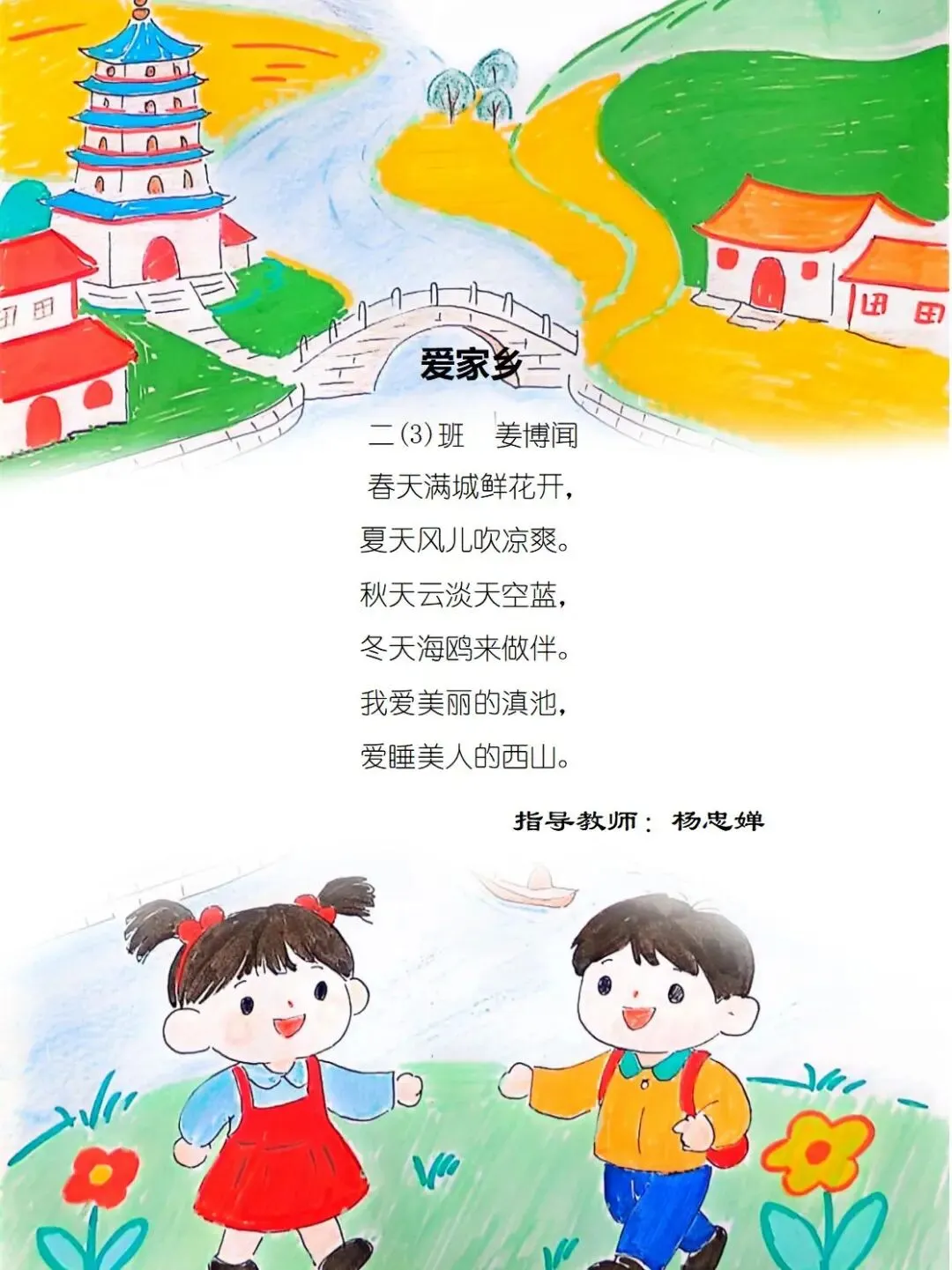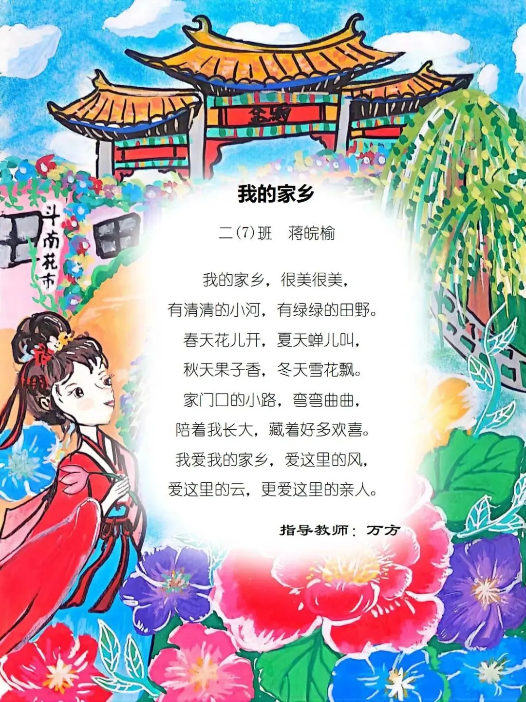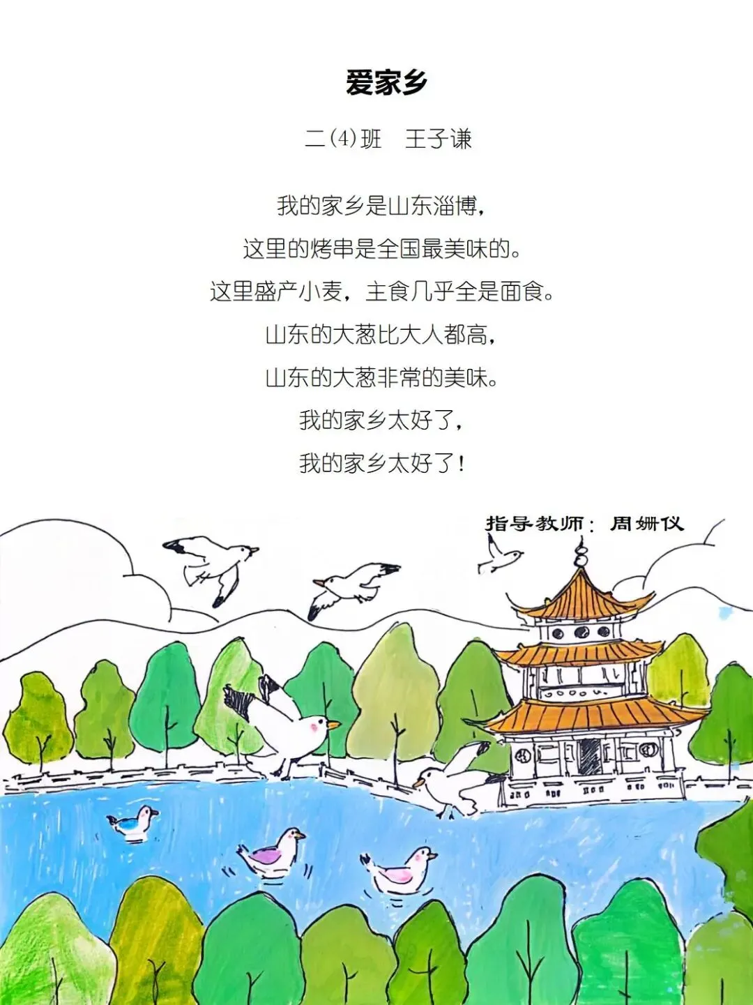 一方水土养童心,一脉相承一家亲,七班的小诗定格家乡美好瞬间,字里行间满是甜甜的乡土情与浓浓的家国爱。