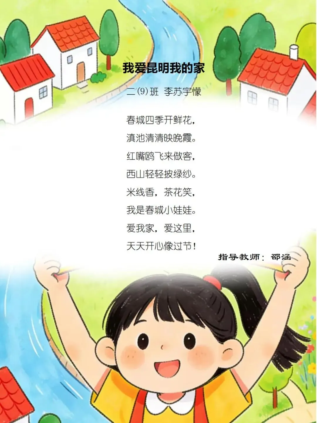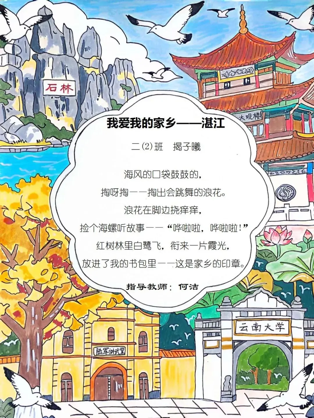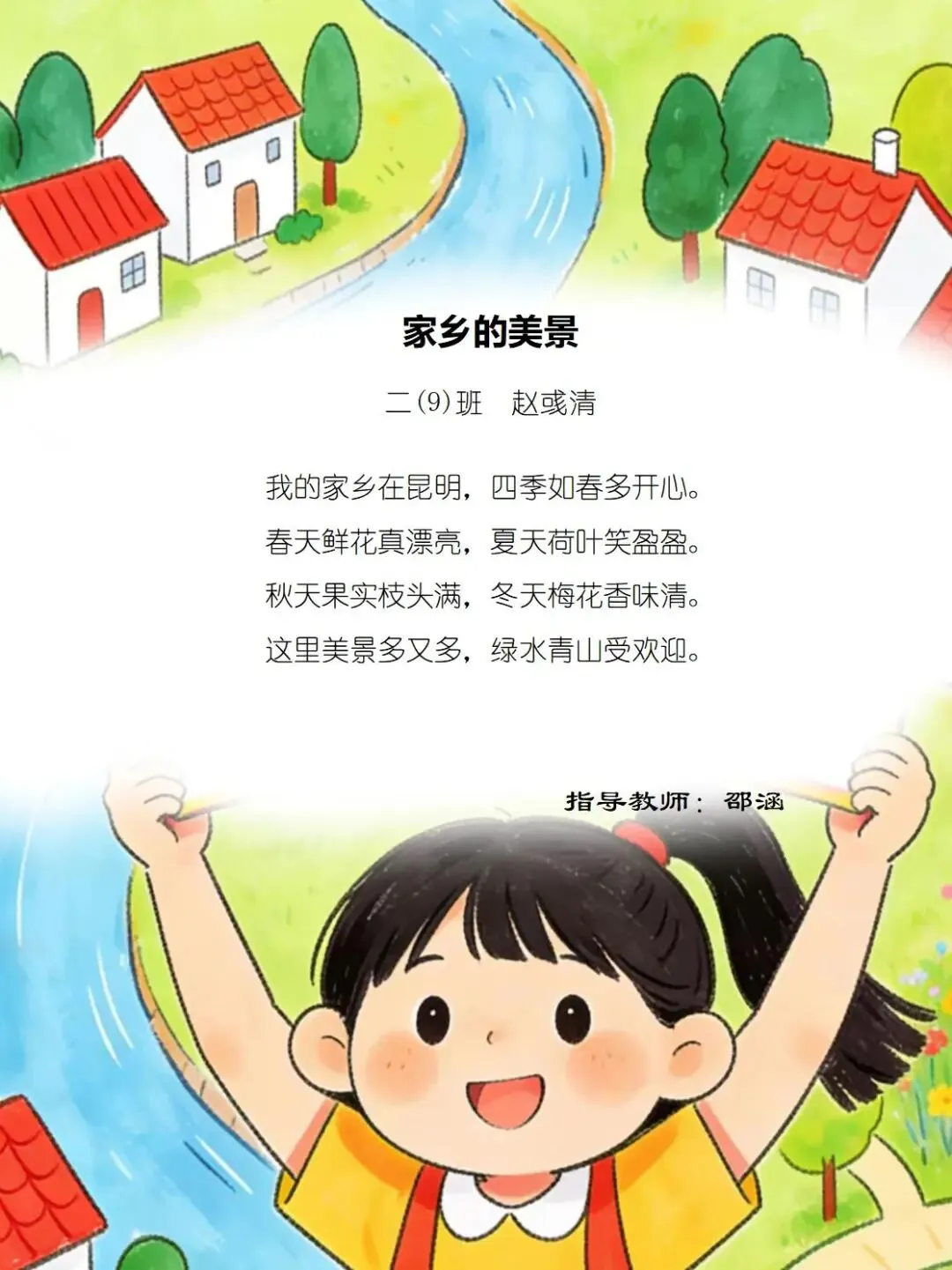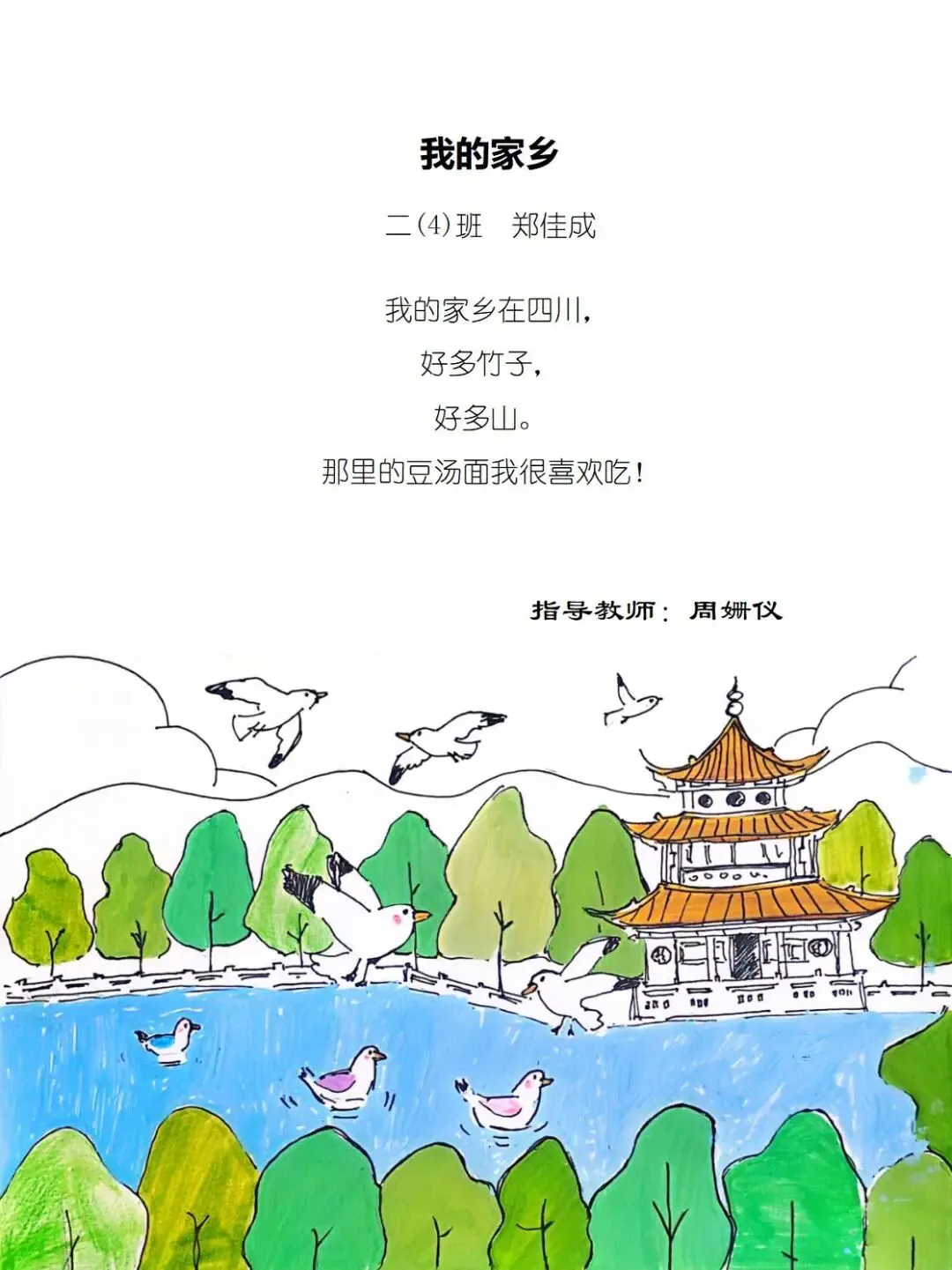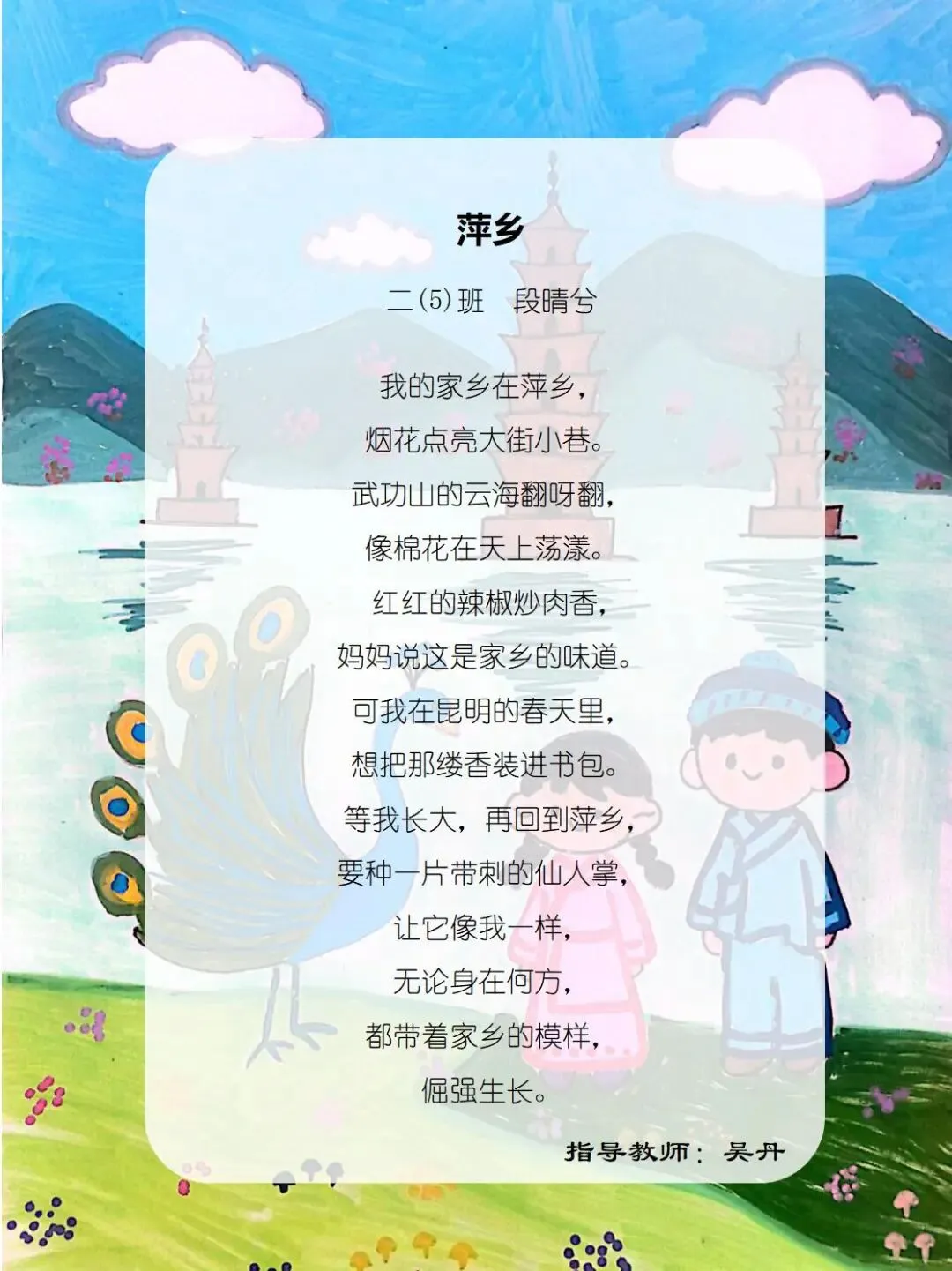 一方水土养童心,一脉相承一家亲,七班的小诗定格家乡美好瞬间,字里行间满是甜甜的乡土情与浓浓的家国爱。